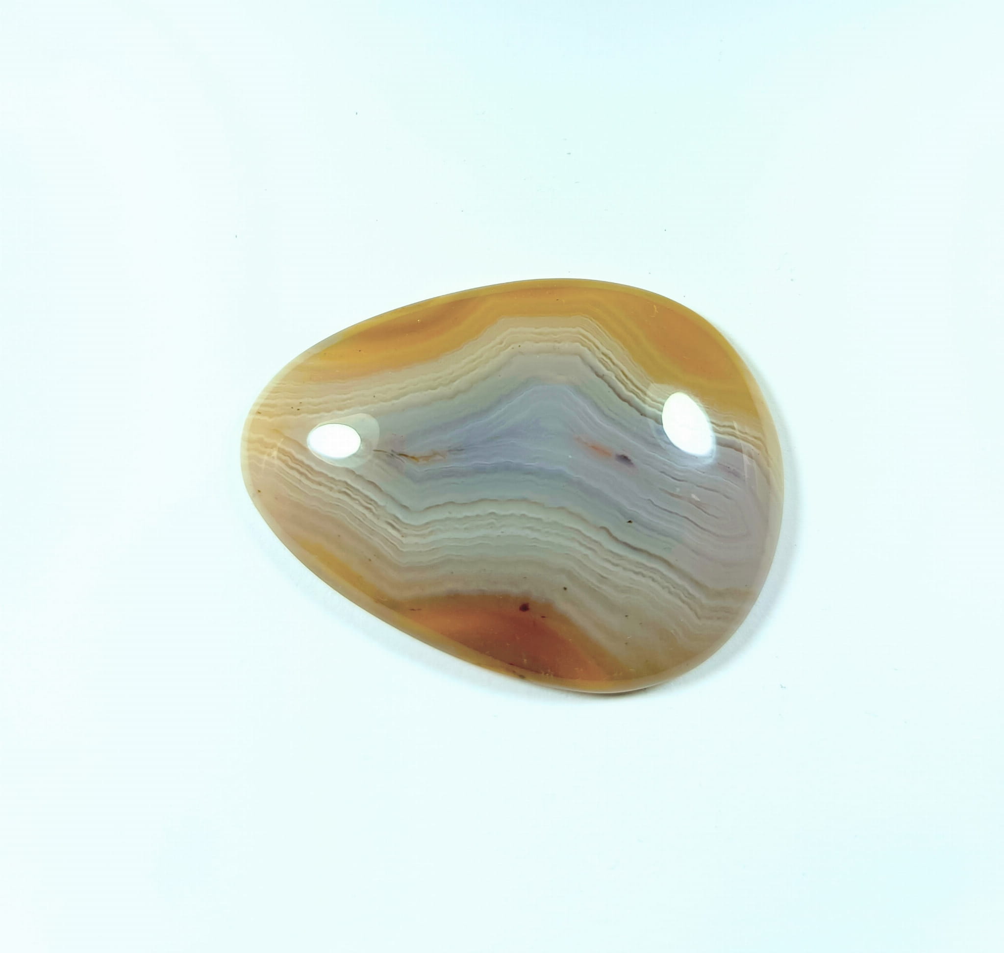 Agat do oprawy kaboszon jasne kolory bursztynu i błękitu, wstęgi agatowe
