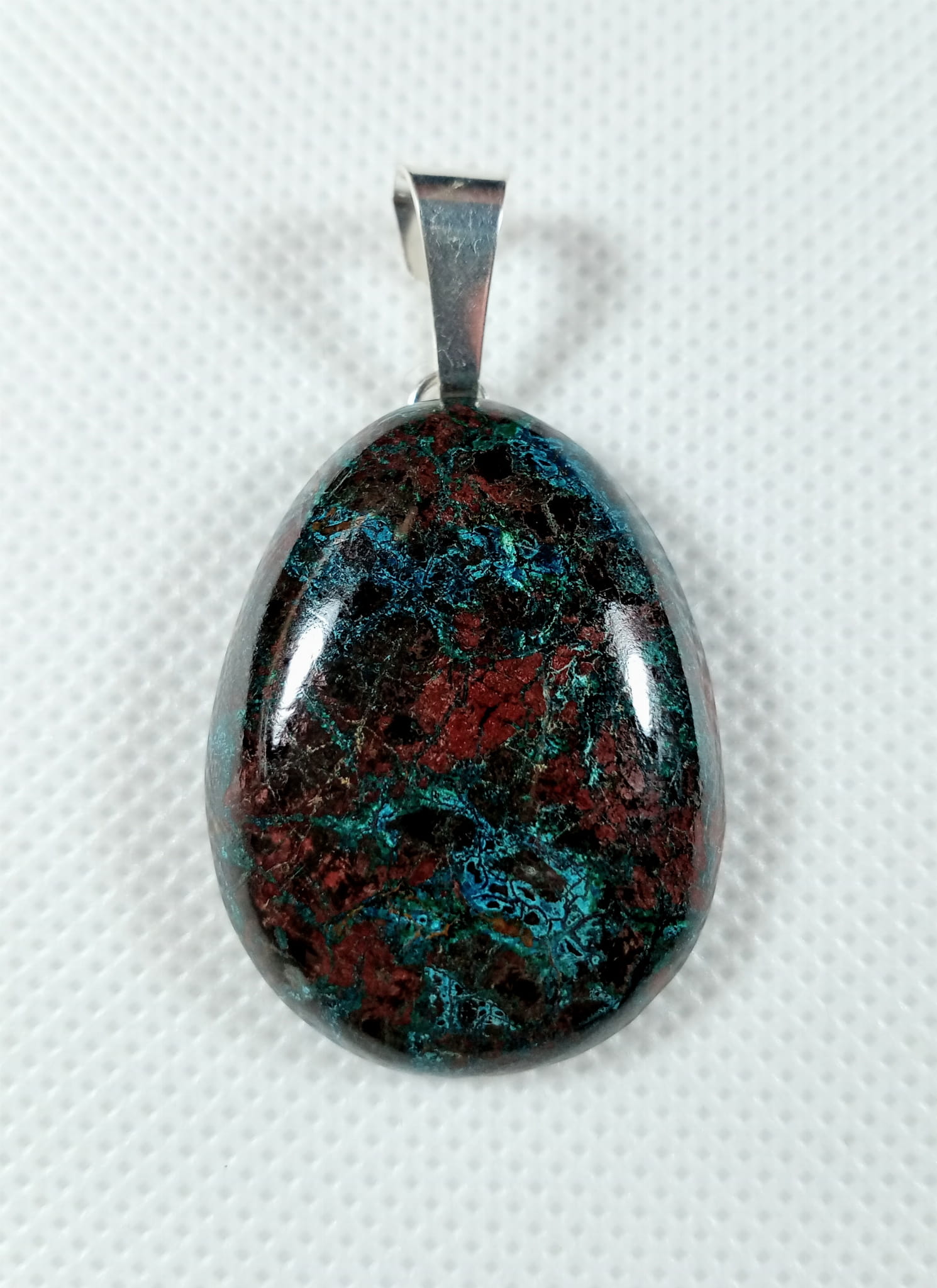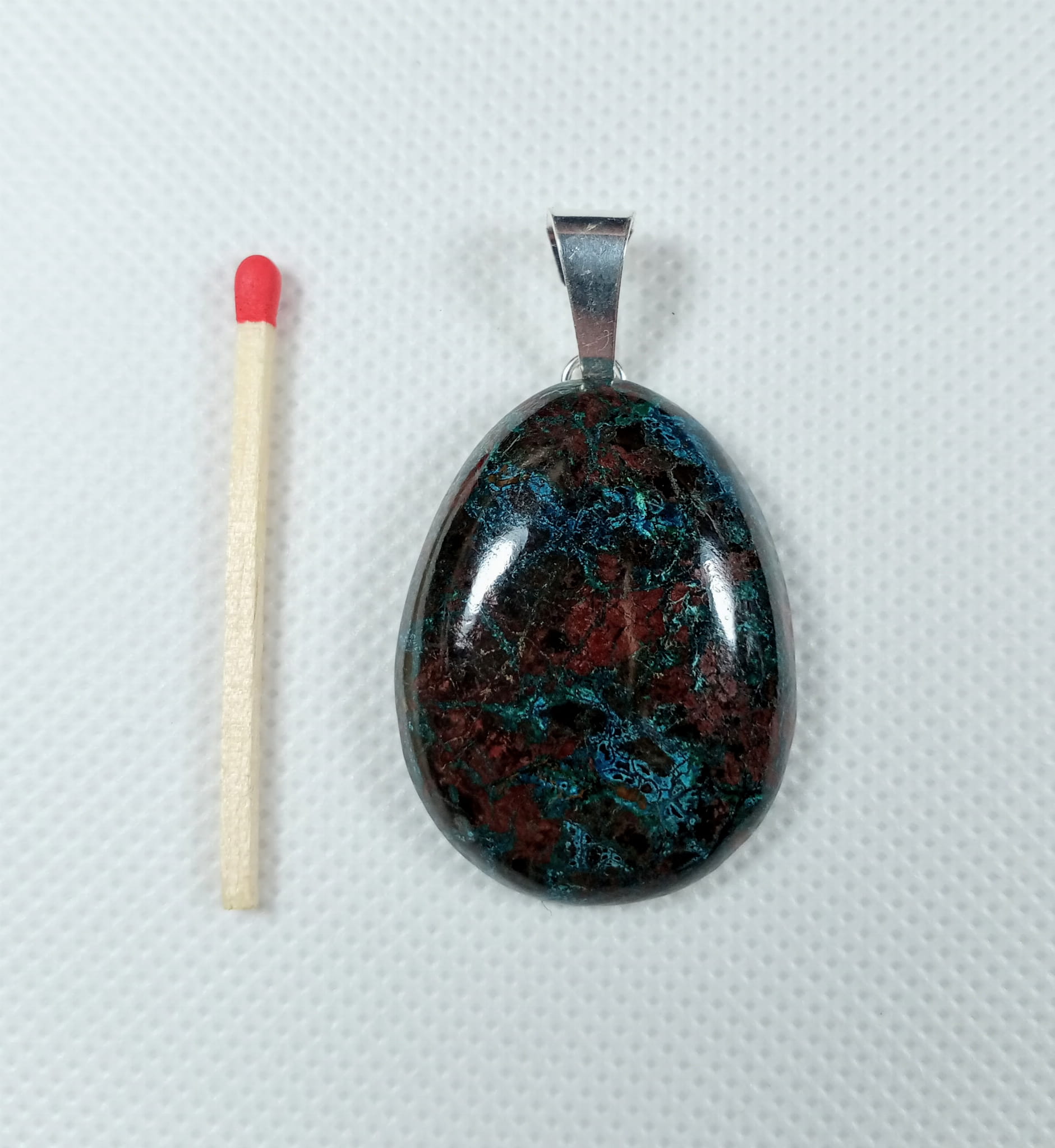Kamień, z którego powstał wisiorek to azuryt, kamień półszlachetny, ozdobny.