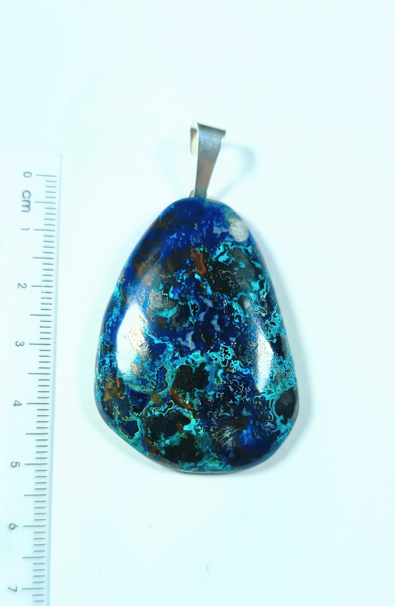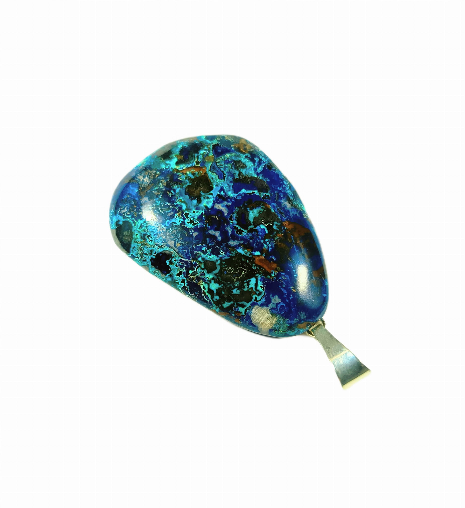 Do kamienia przymocowana jest posrebrzana zawieszka.