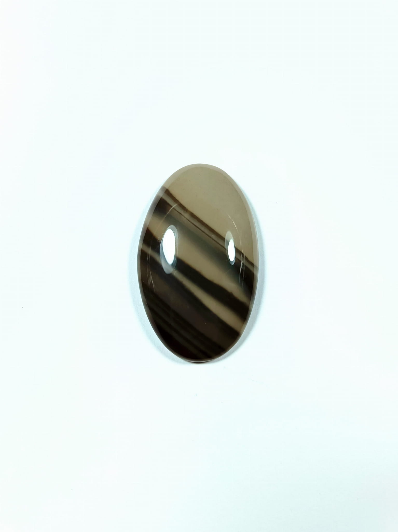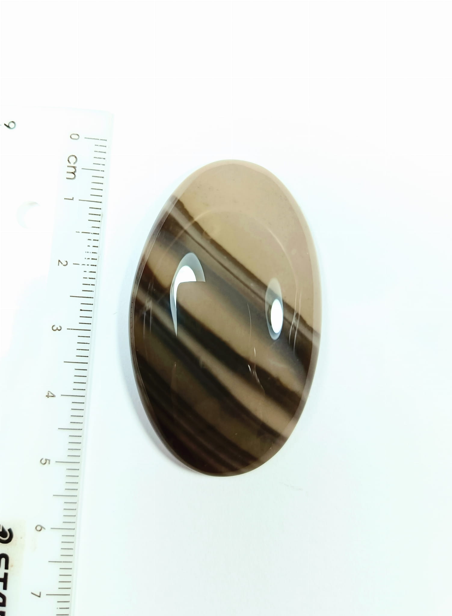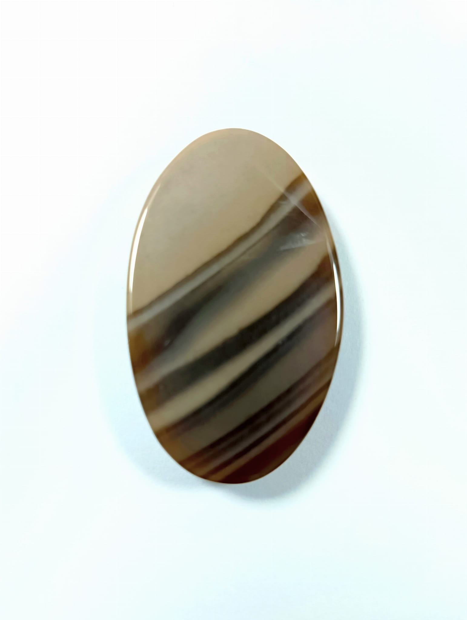 Krzemień pasiasty, naturalny kamień ręcznie formowany w owalny kształt, szlifowany.