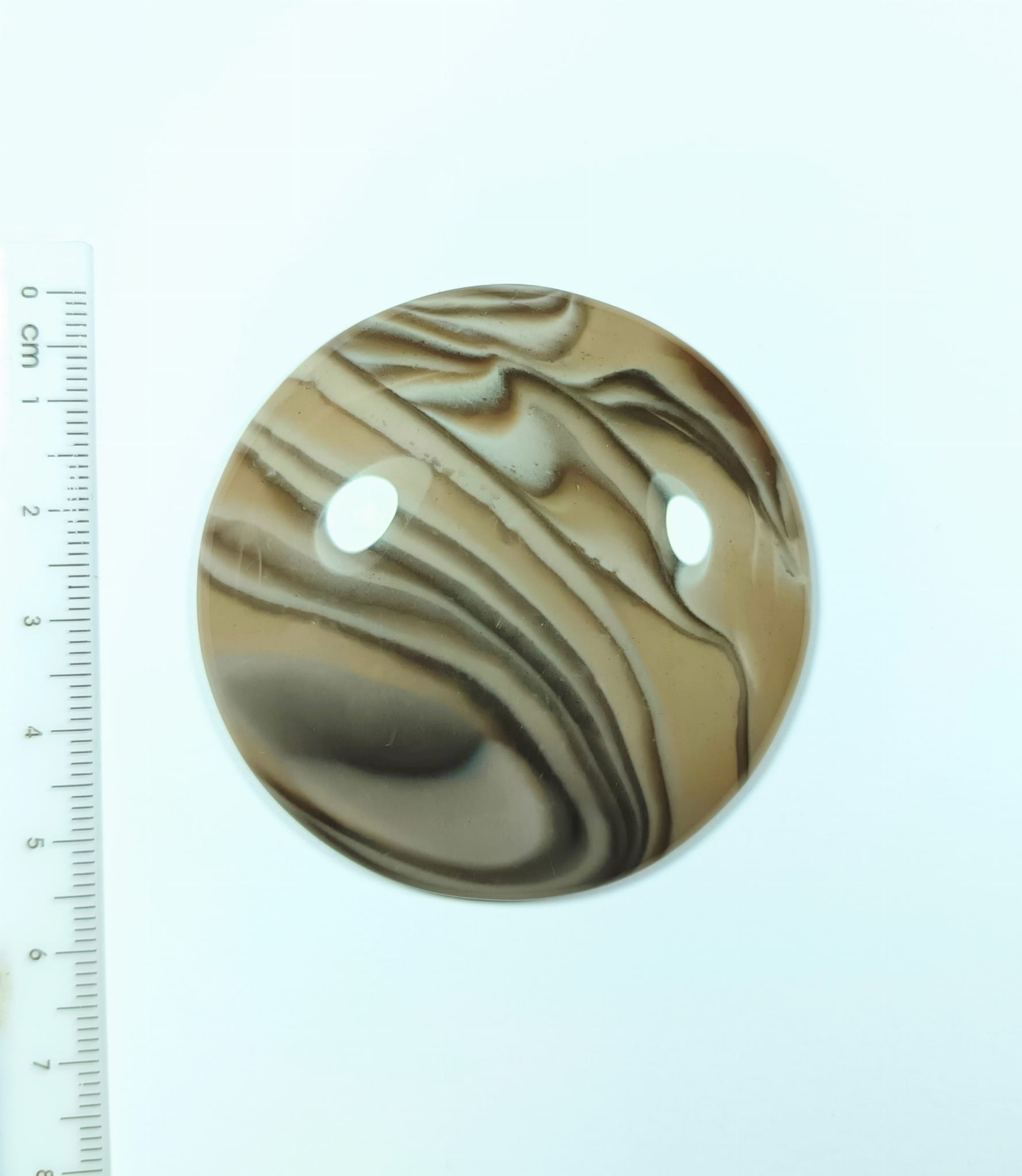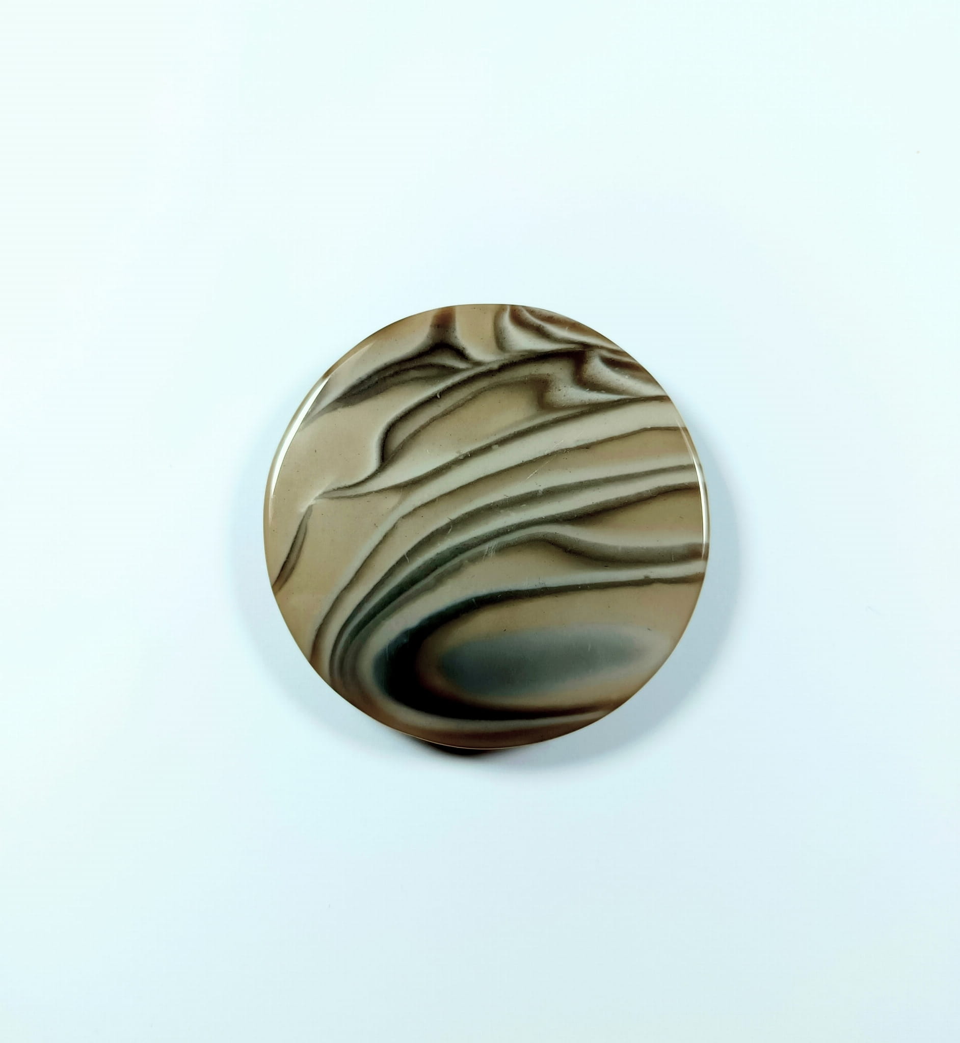 Krzemień pasiasty, naturalny kamień ręcznie formowany w półokrągły kształt, szlifowany.