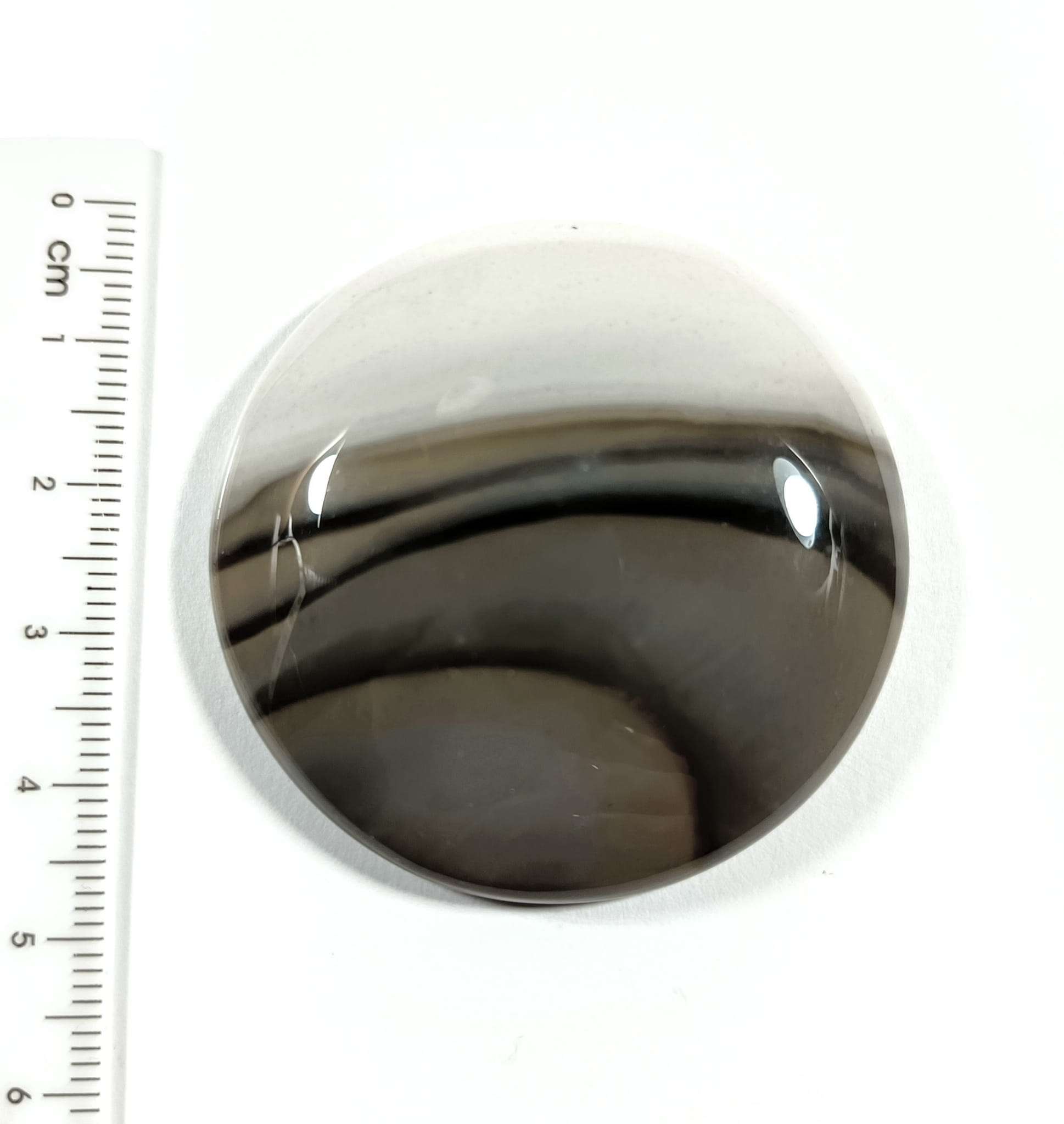 Krzemień pasiasty do oprawy, okrągły, szlifowany.
