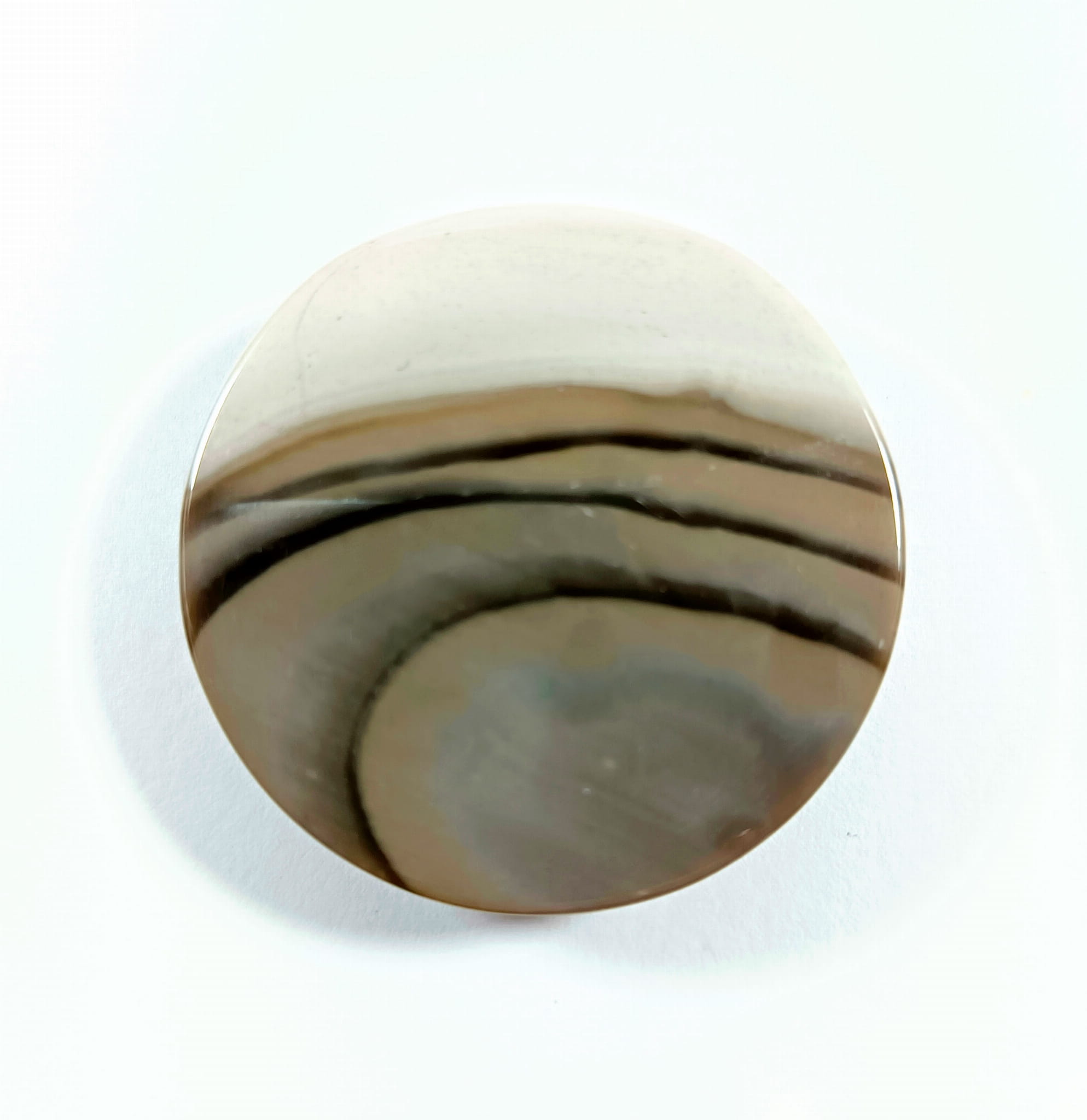 Krzemień pasiasty, naturalny kamień ręcznie formowany w półokrągły kształt, szlifowany.