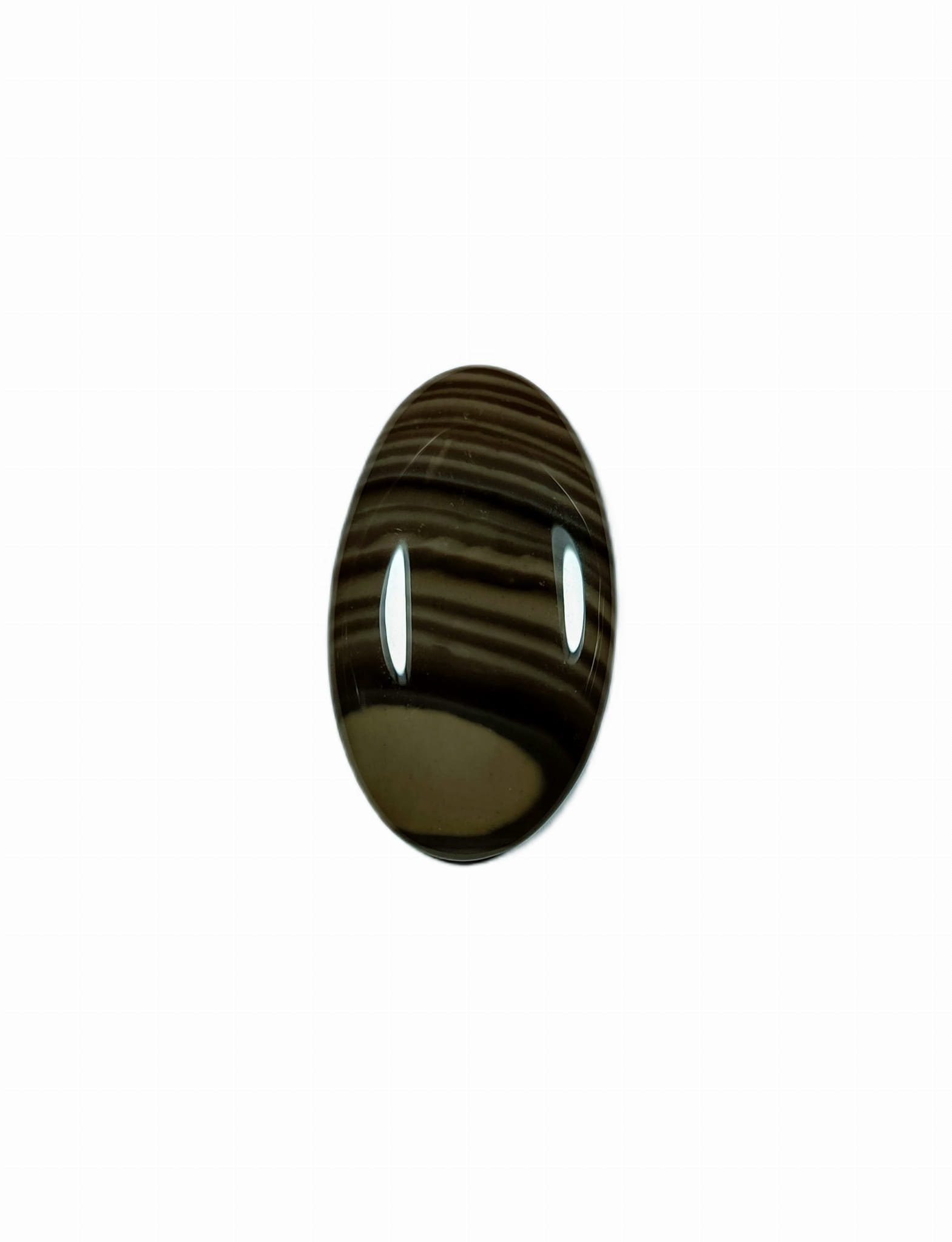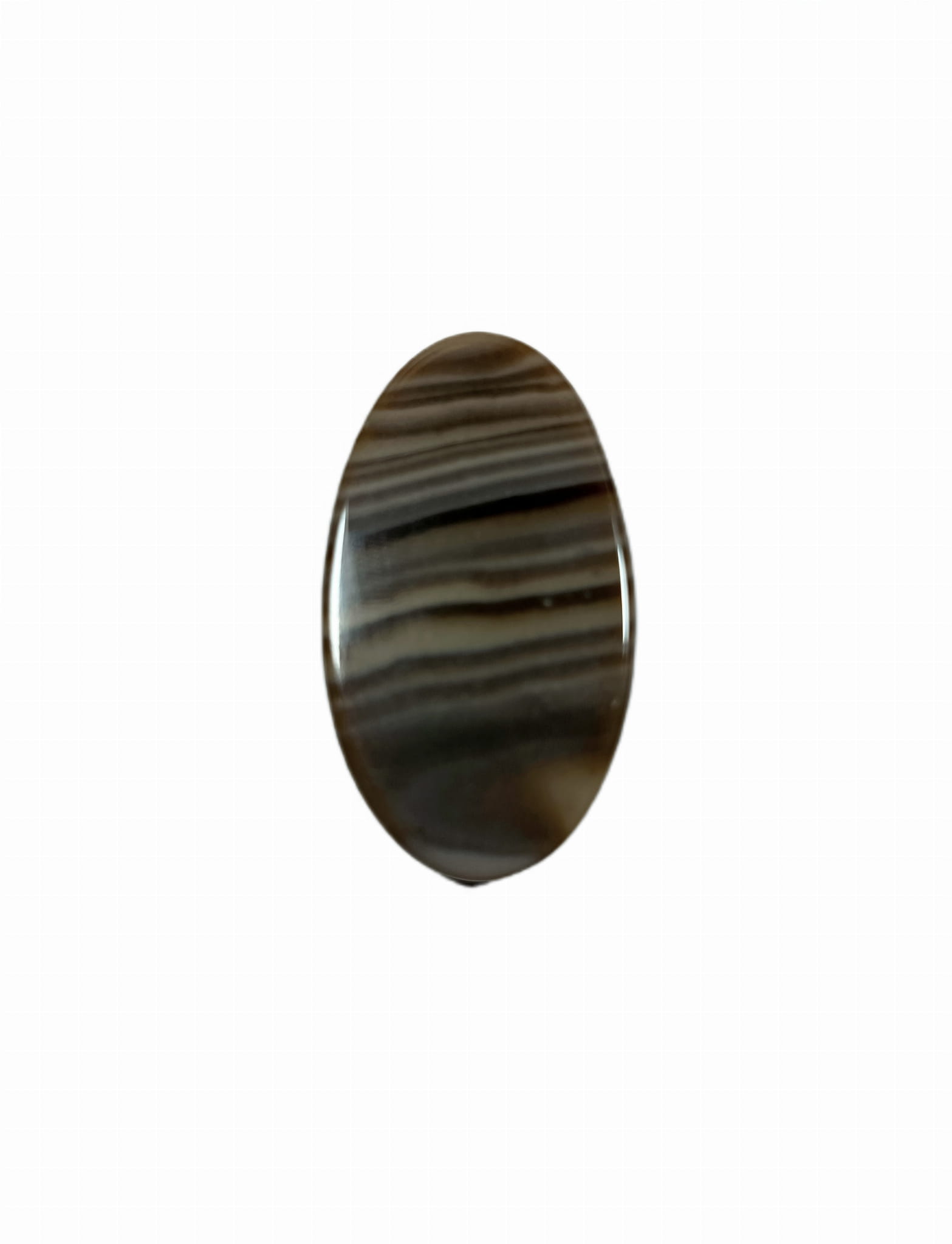 Krzemień pasiasty, naturalny kamień ręcznie formowany w owalny kształt, szlifowany.
