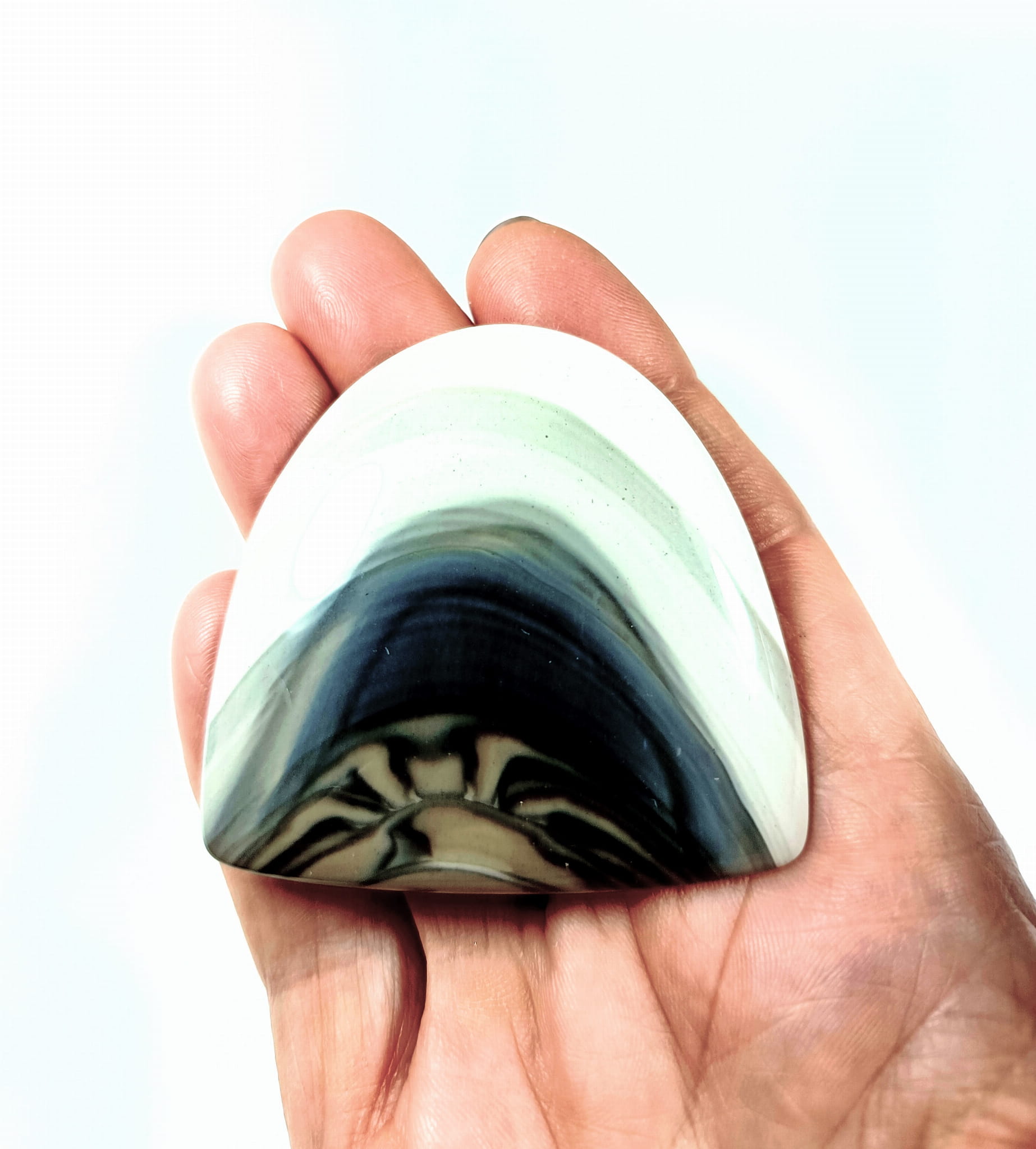 Krzemień pasiasty naturalny kamień ręcznie formowany, szlifowany.