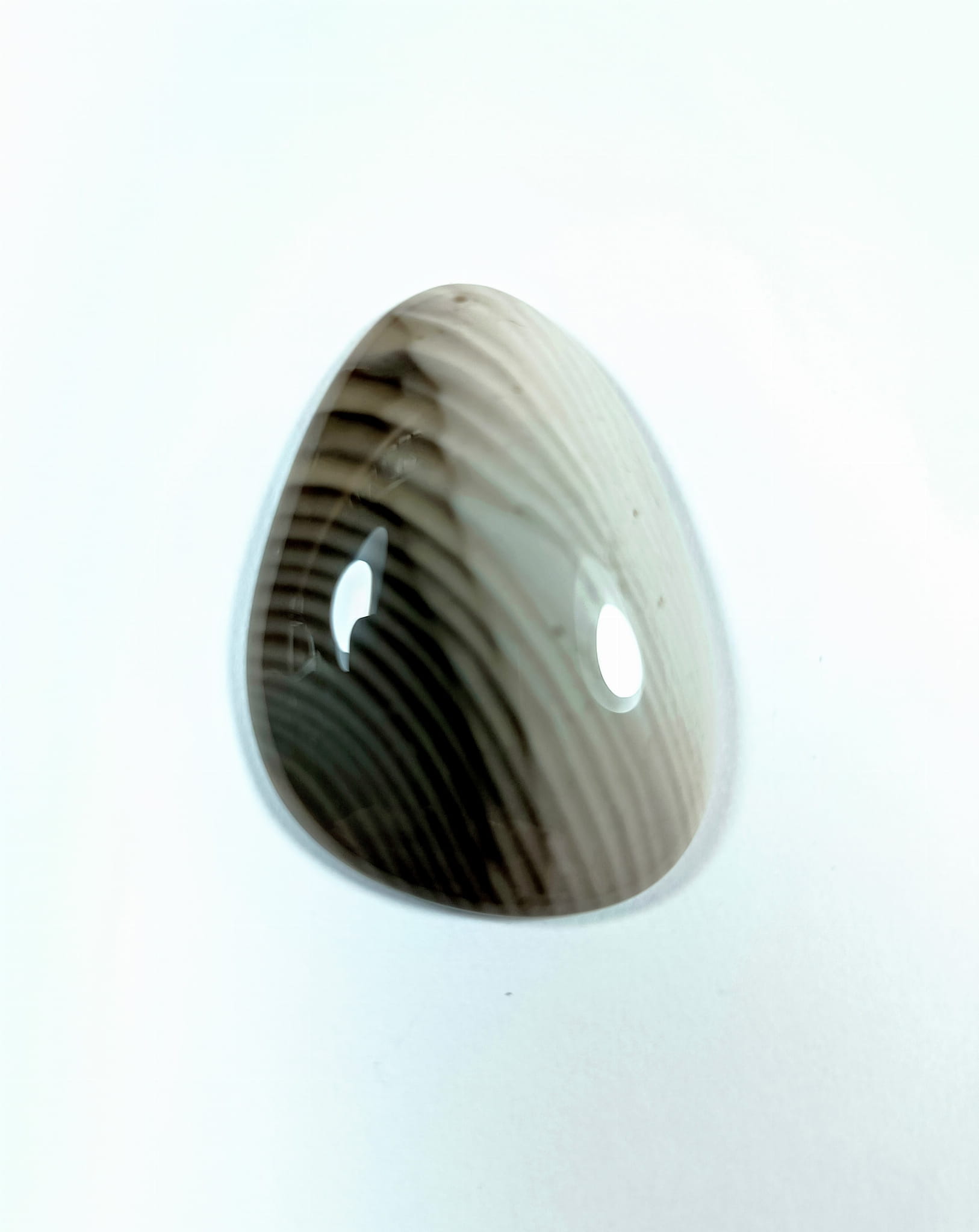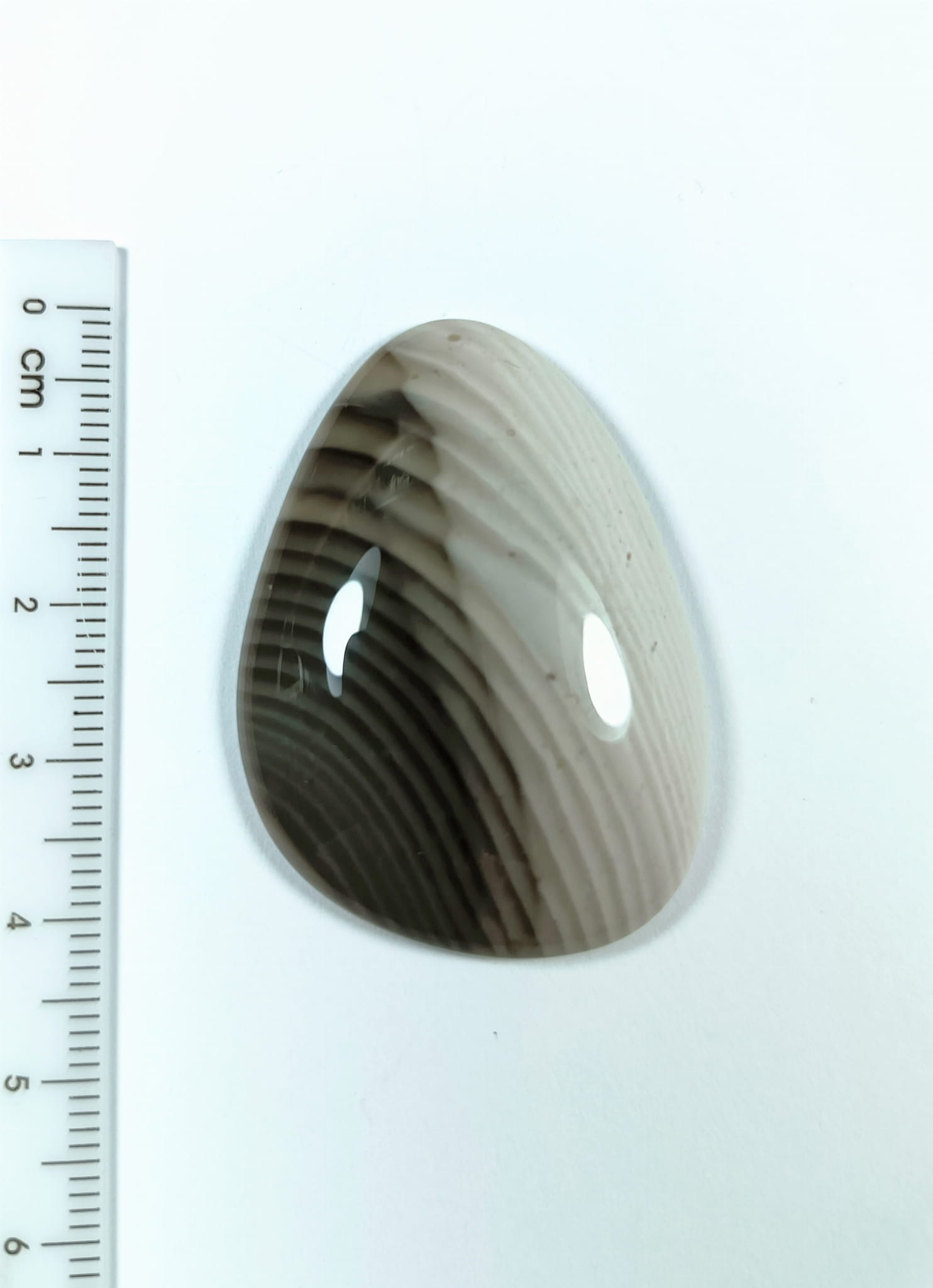 Krzemień pasiasty, naturalny kamień ręcznie formowany w owalny kształt, szlifowany.