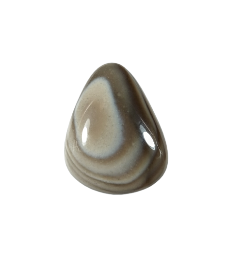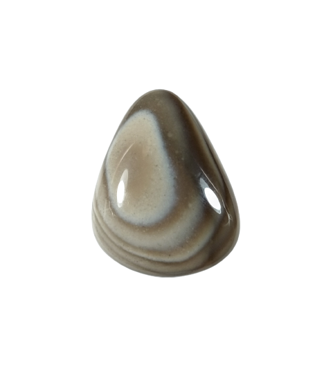 Krzemień pasiasty, naturalny kamień ręcznie formowany w owalny kształt, szlifowany.