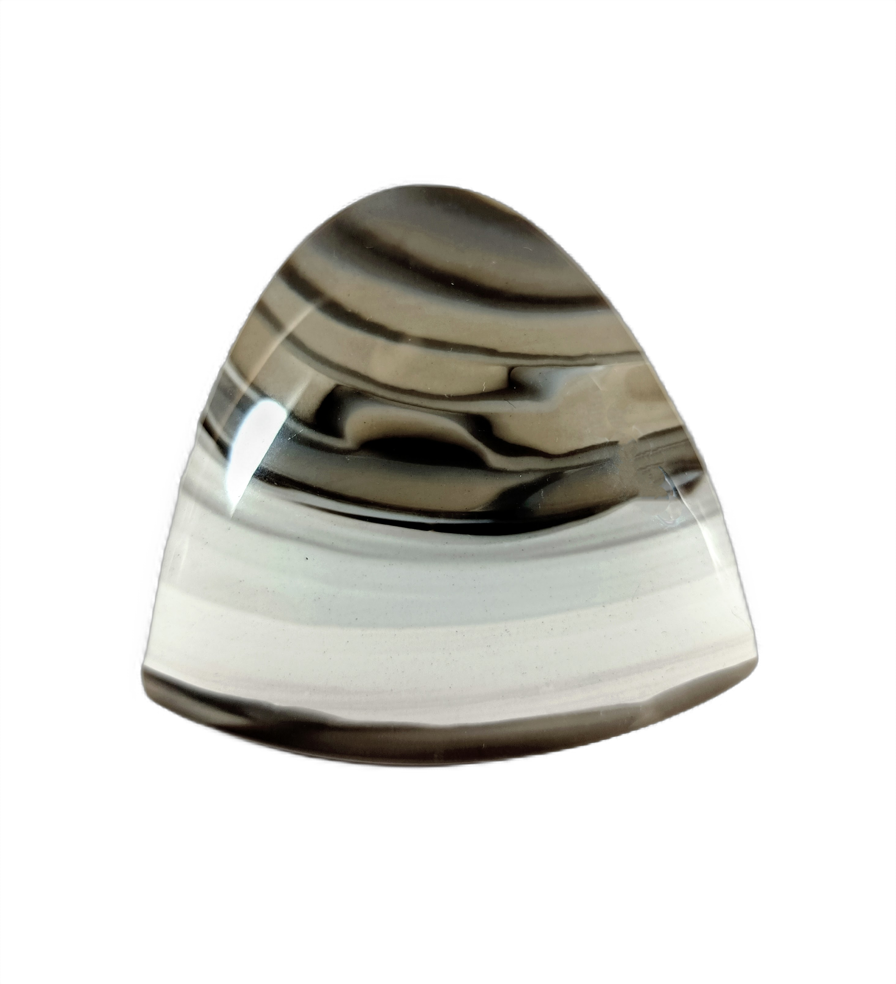Krzemień pasiasty, naturalny kamień ręcznie formowany w półokrągły kształt, szlifowany.