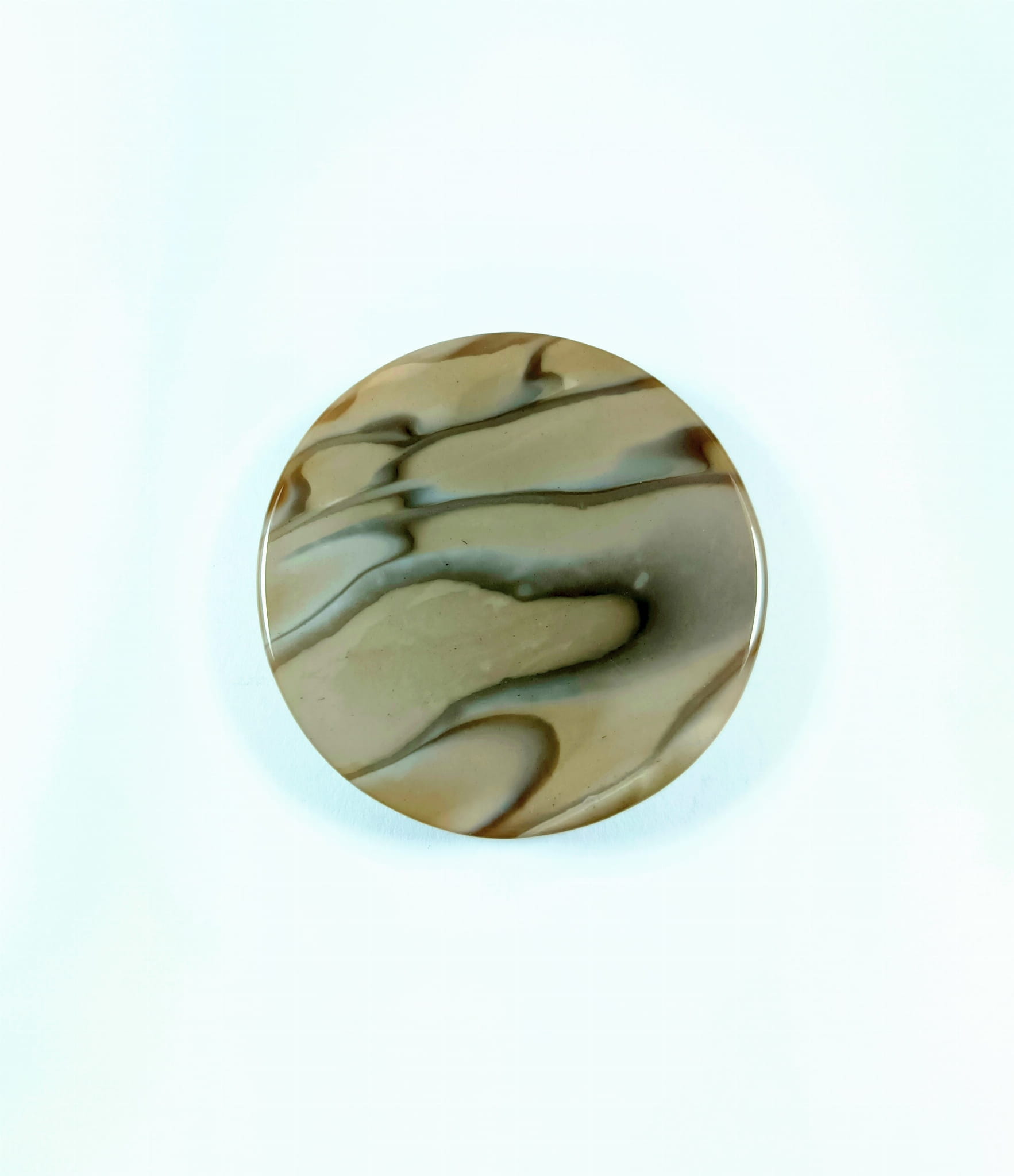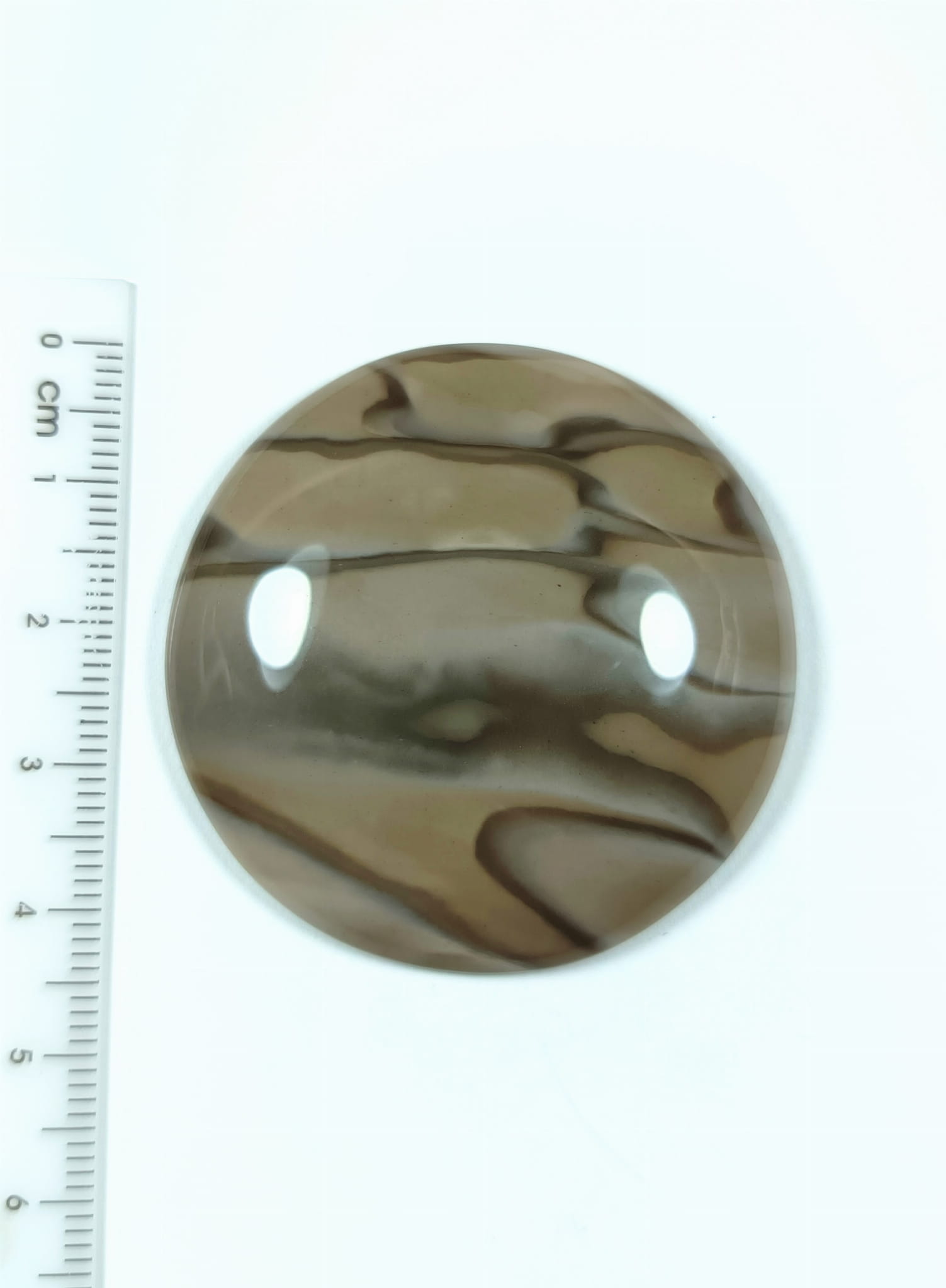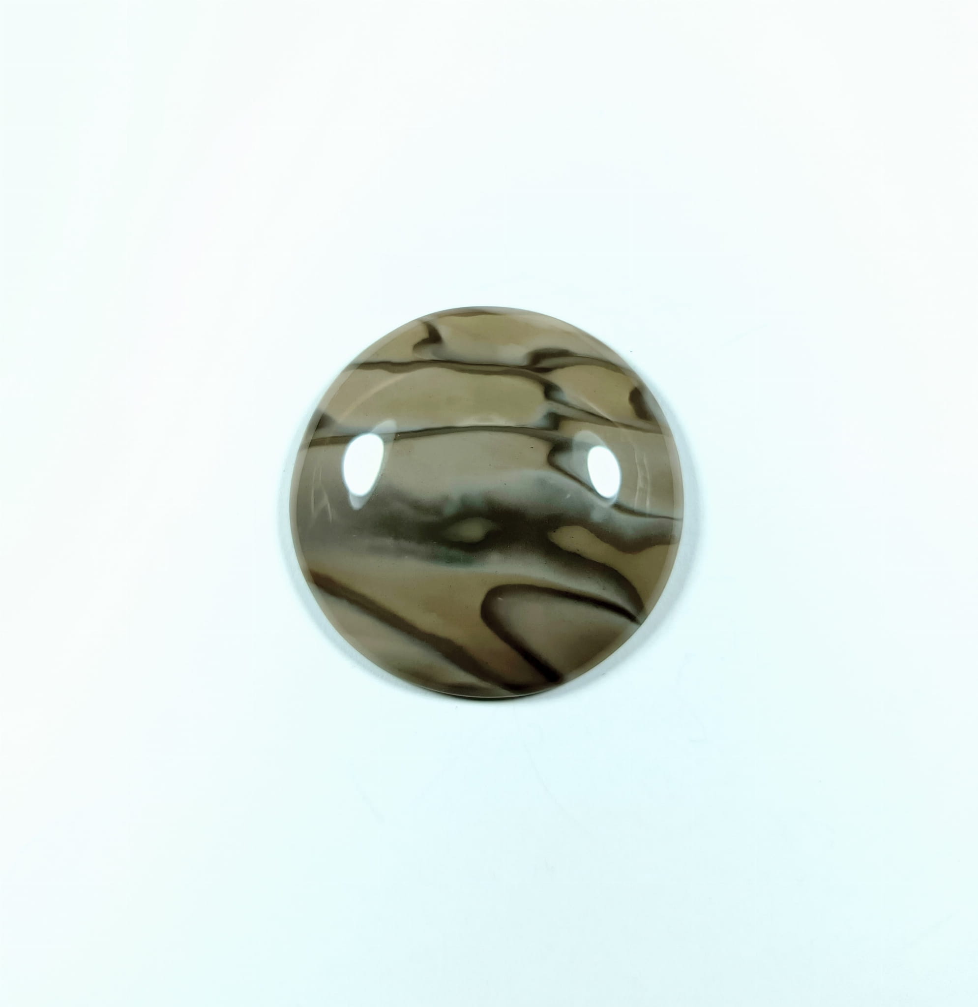 Krzemień pasiasty, naturalny kamień ręcznie formowany w półokrągły kształt, szlifowany.
