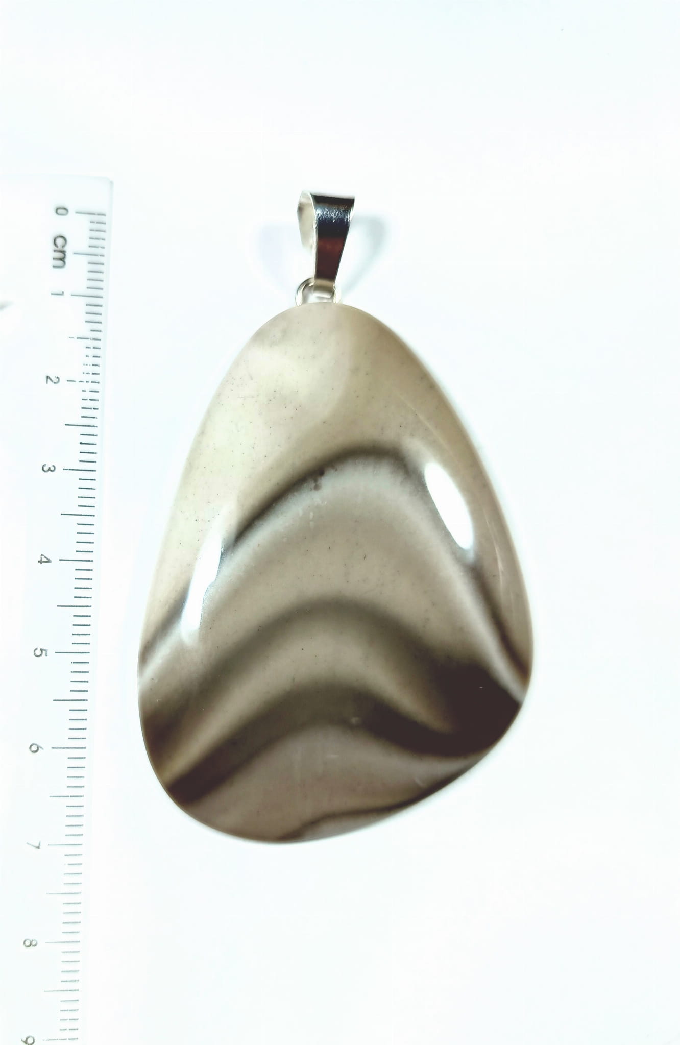 Krzemień pasiasty na posrebrzanej zawieszce rzeźba