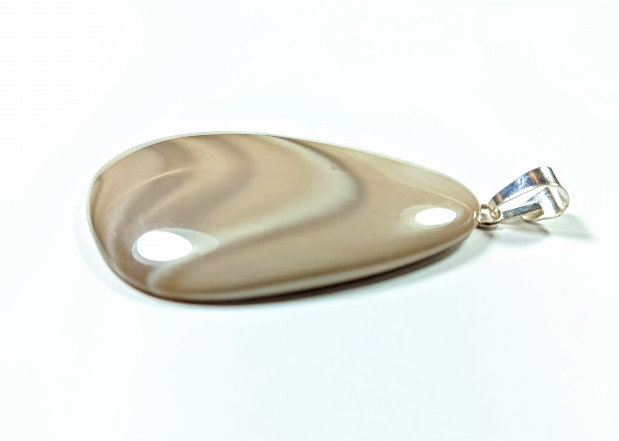 Wisiorek z krzemienia pasiastego z poprzecznym otworkiem