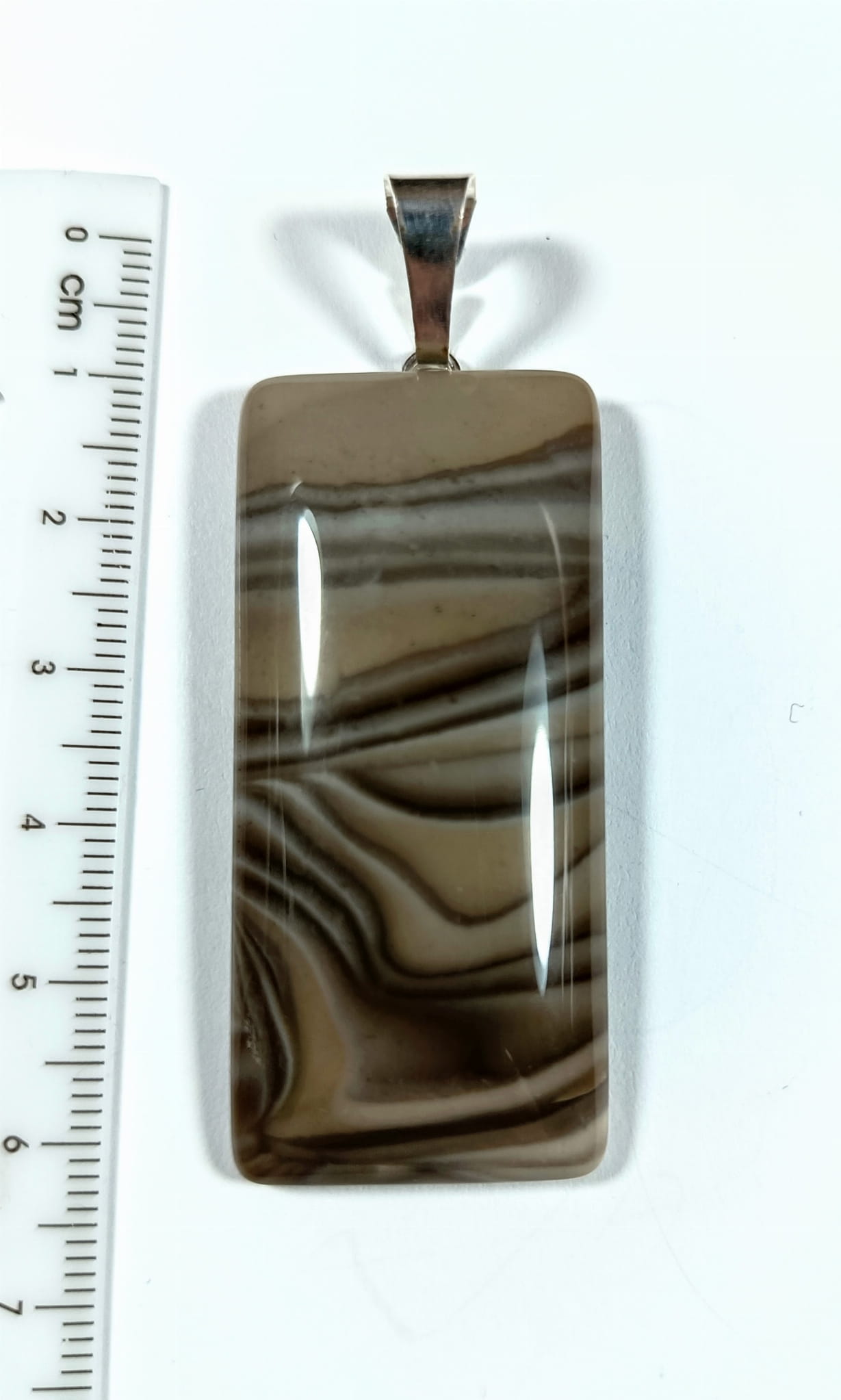 Wisiorek krzemień pasiasty na posrebrzanej zawieszce o prostokątnym kształcie