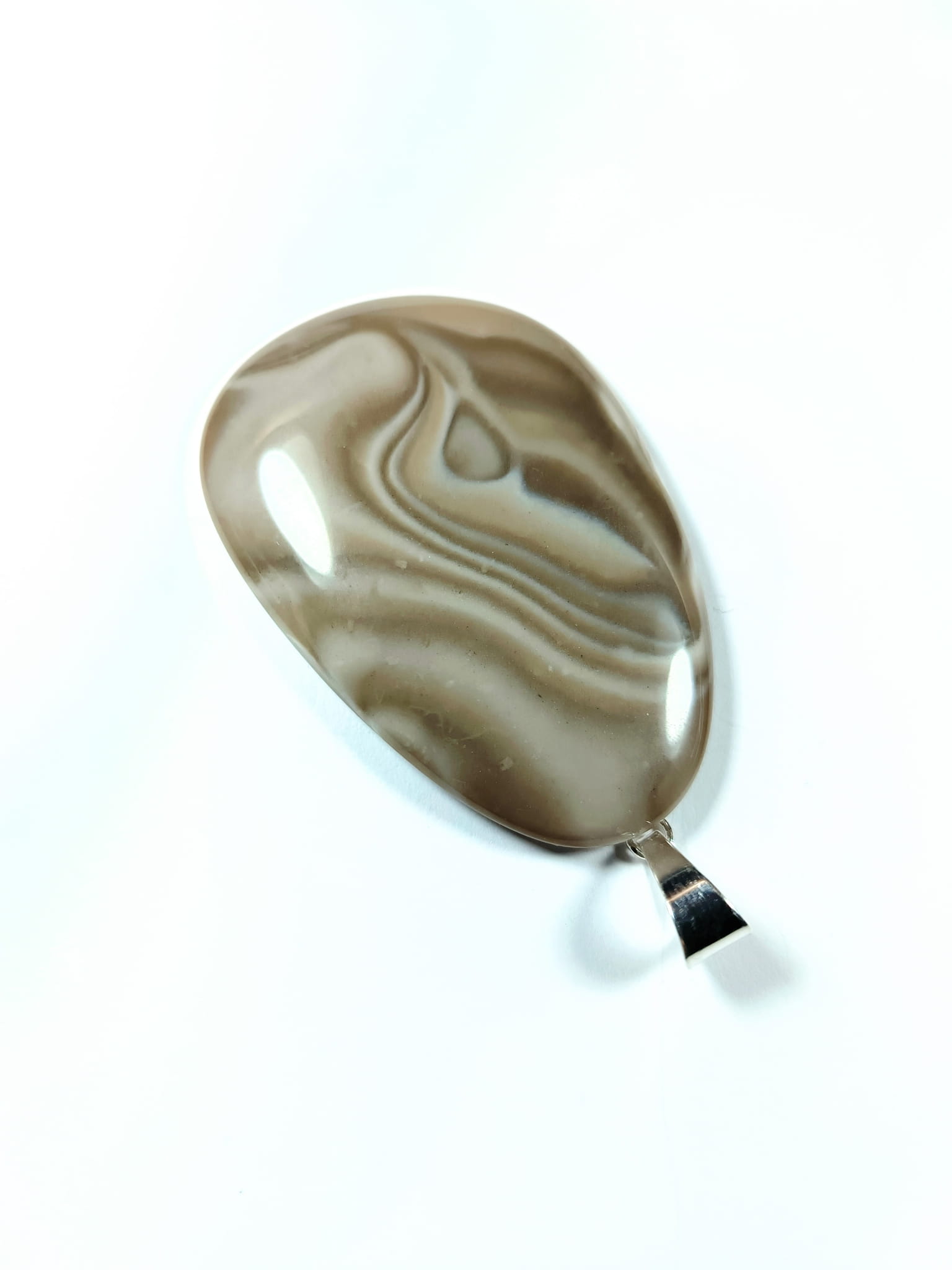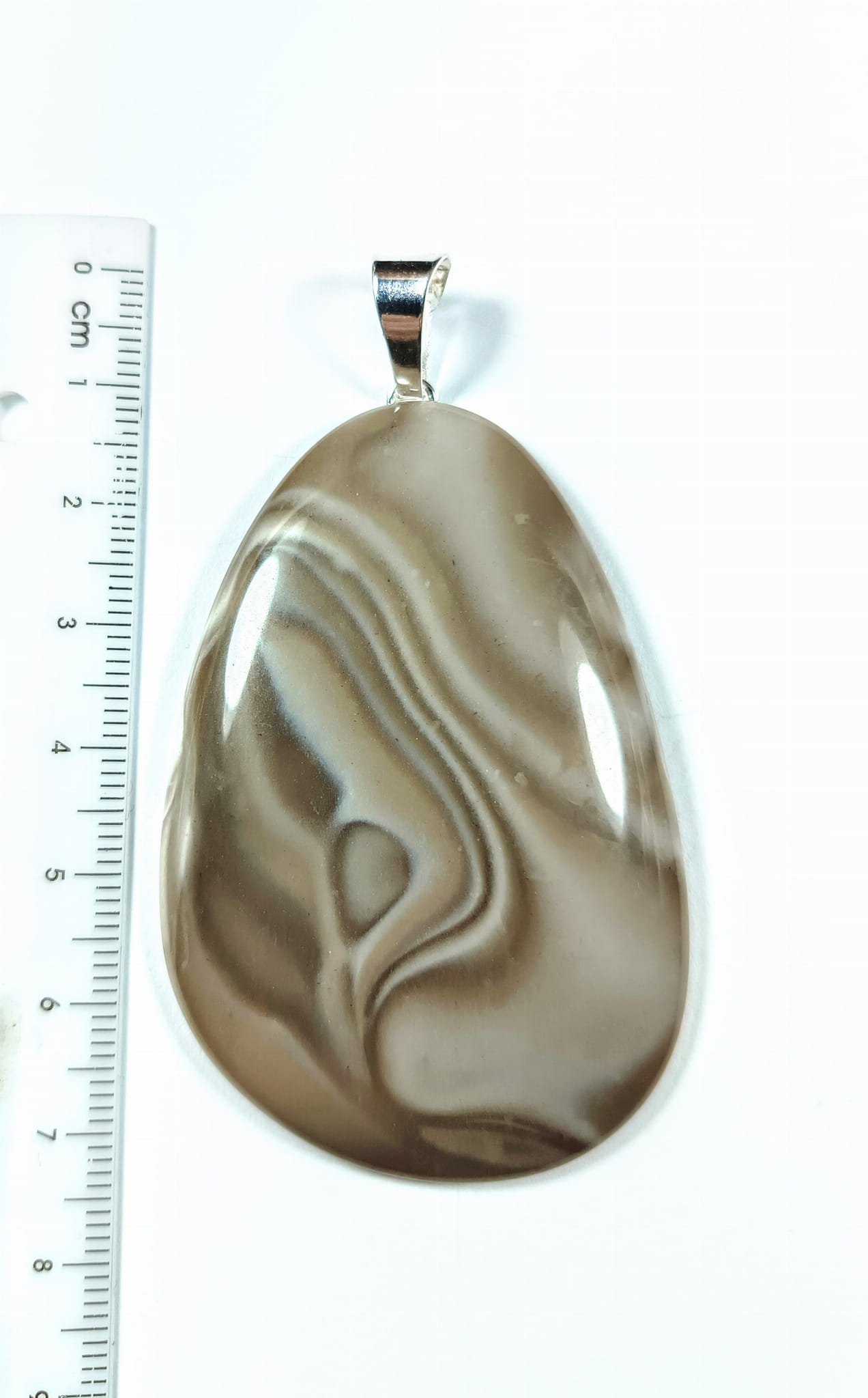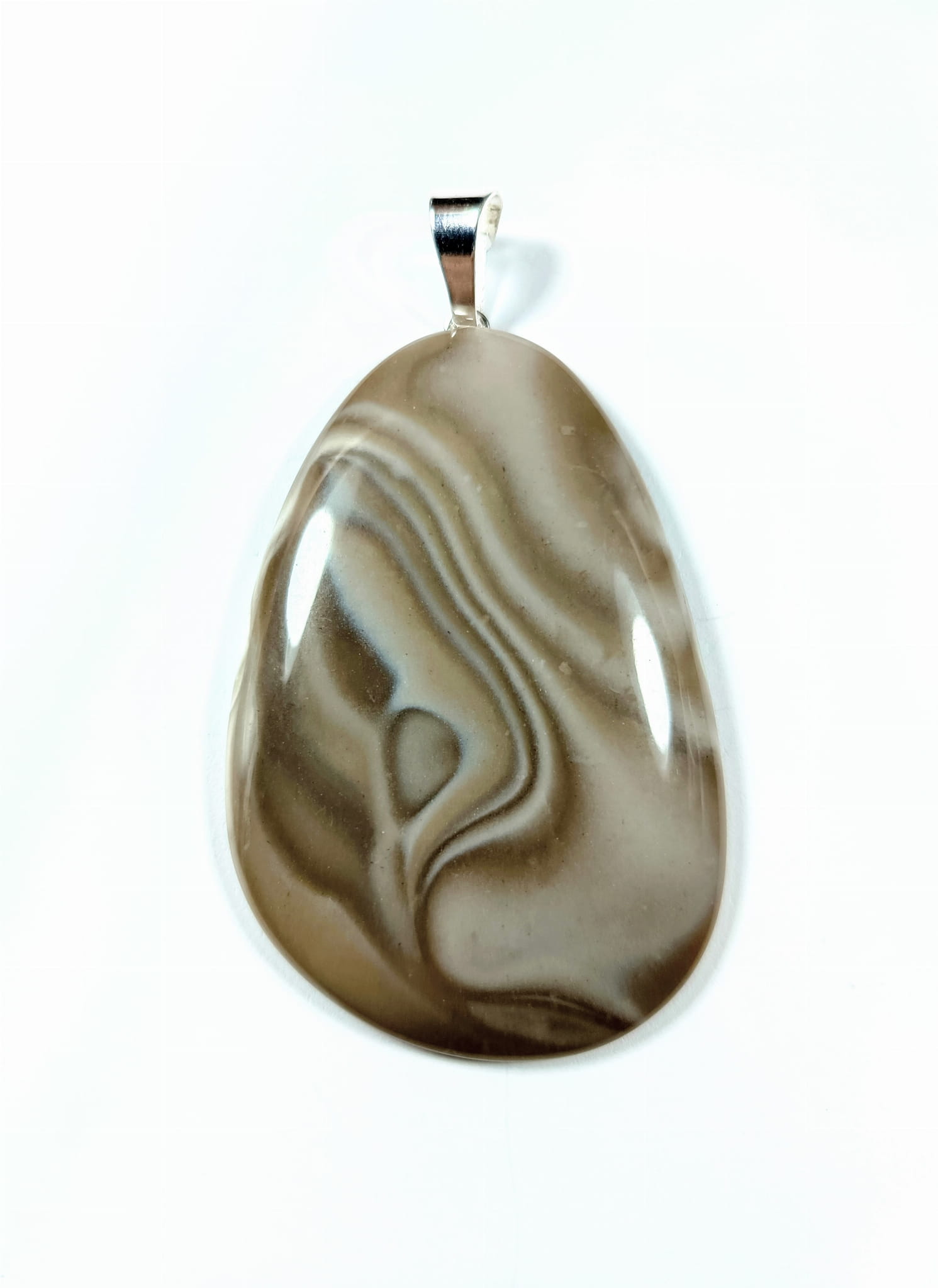 Krzemień pasiasty na posrebrzanej zawieszce rzeźba