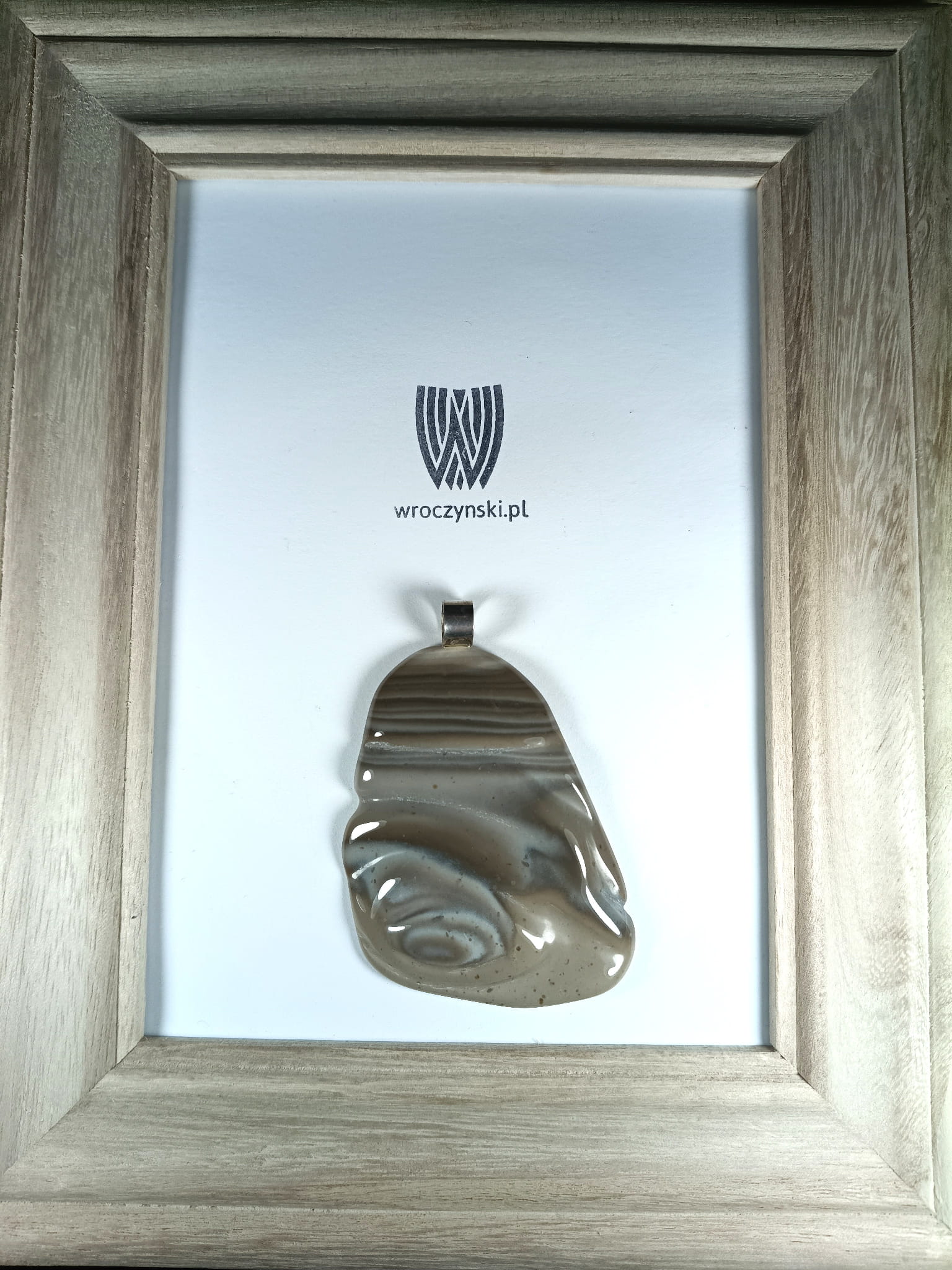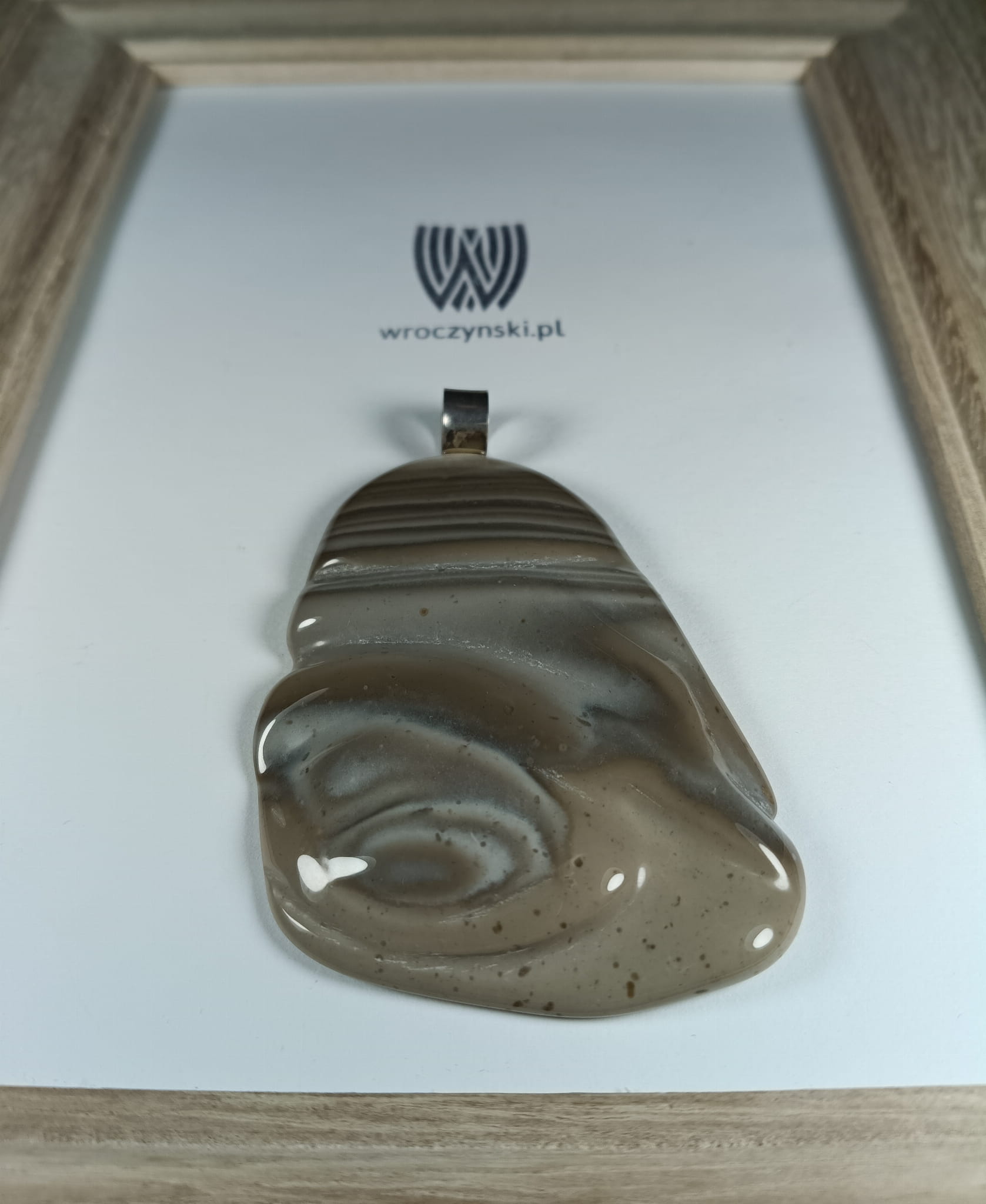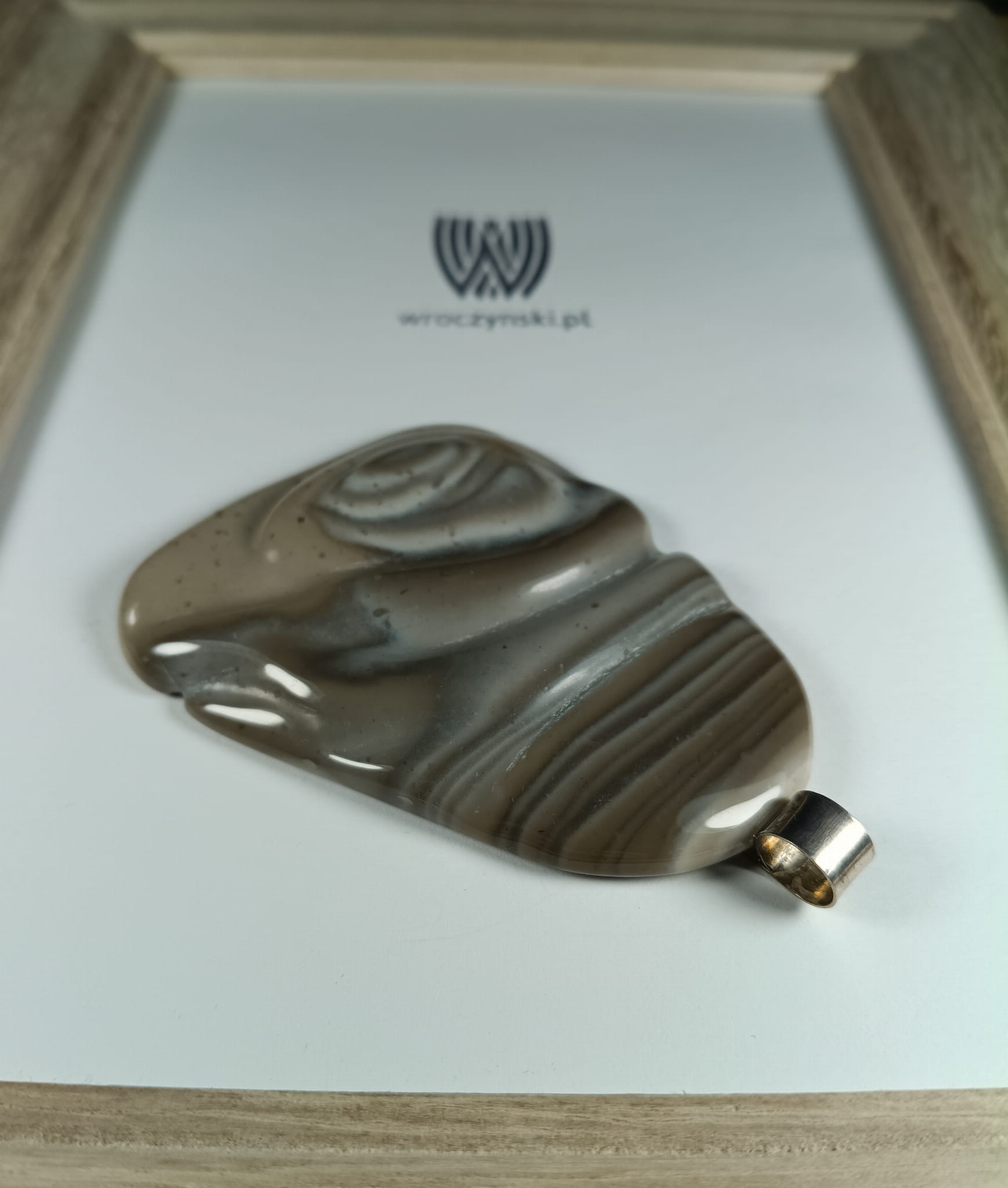 Wisiorek z krzemienia pasiastego o niepowtarzalnym wzorze, podkreślonym poprzez artystyczne rzeźbienie
