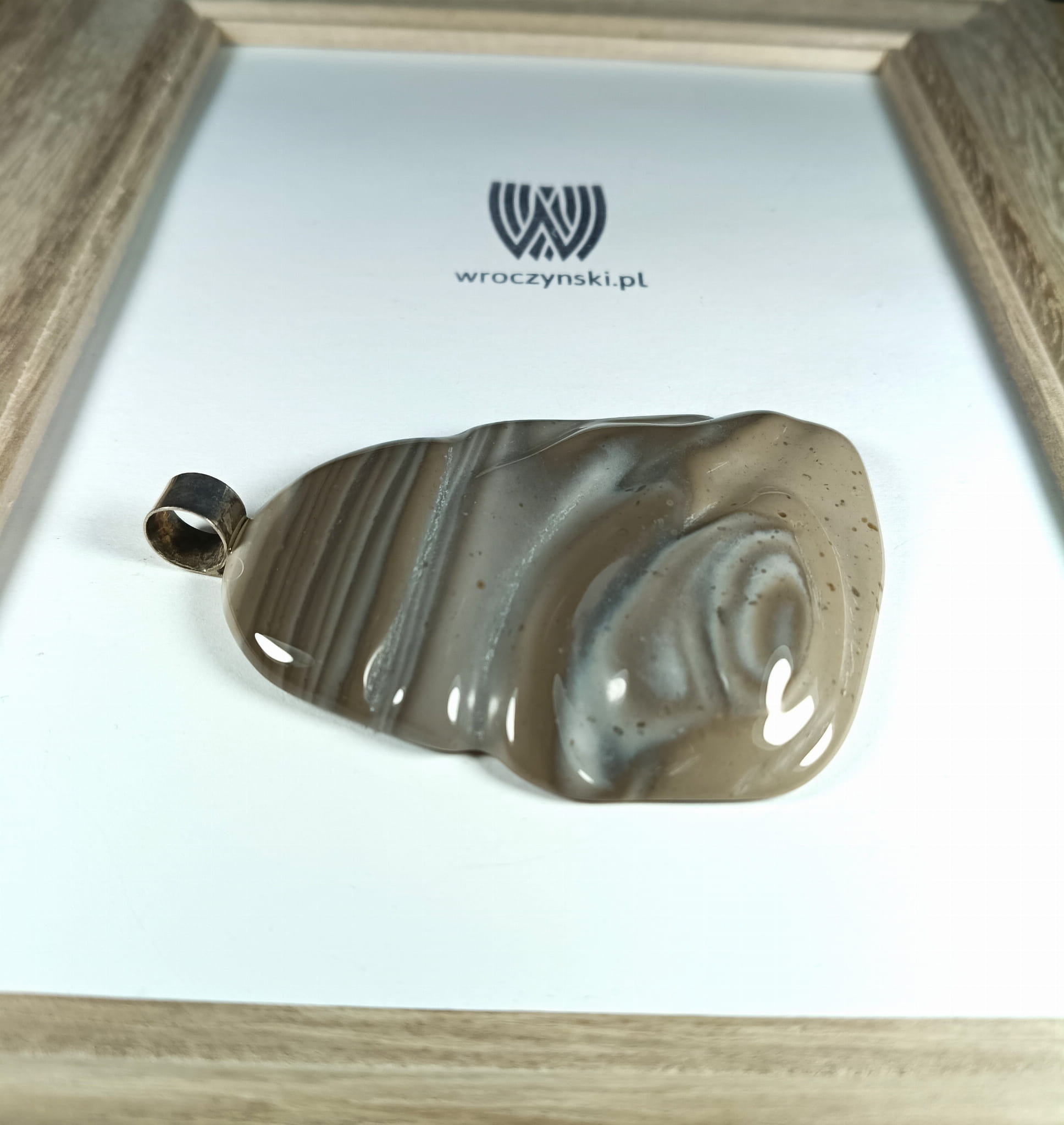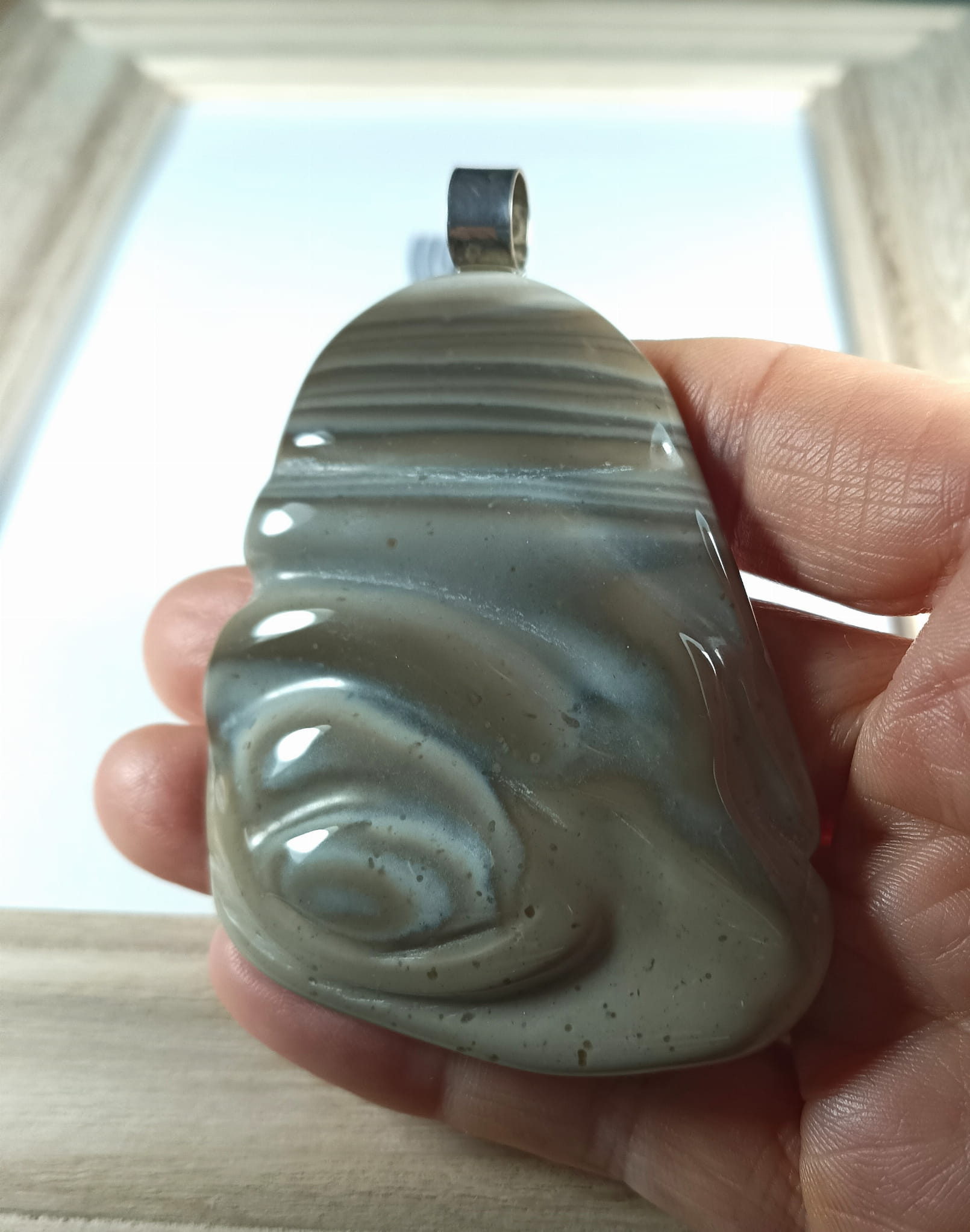 Krzemień pasiasty na posrebrzanej zawieszce rzeźba