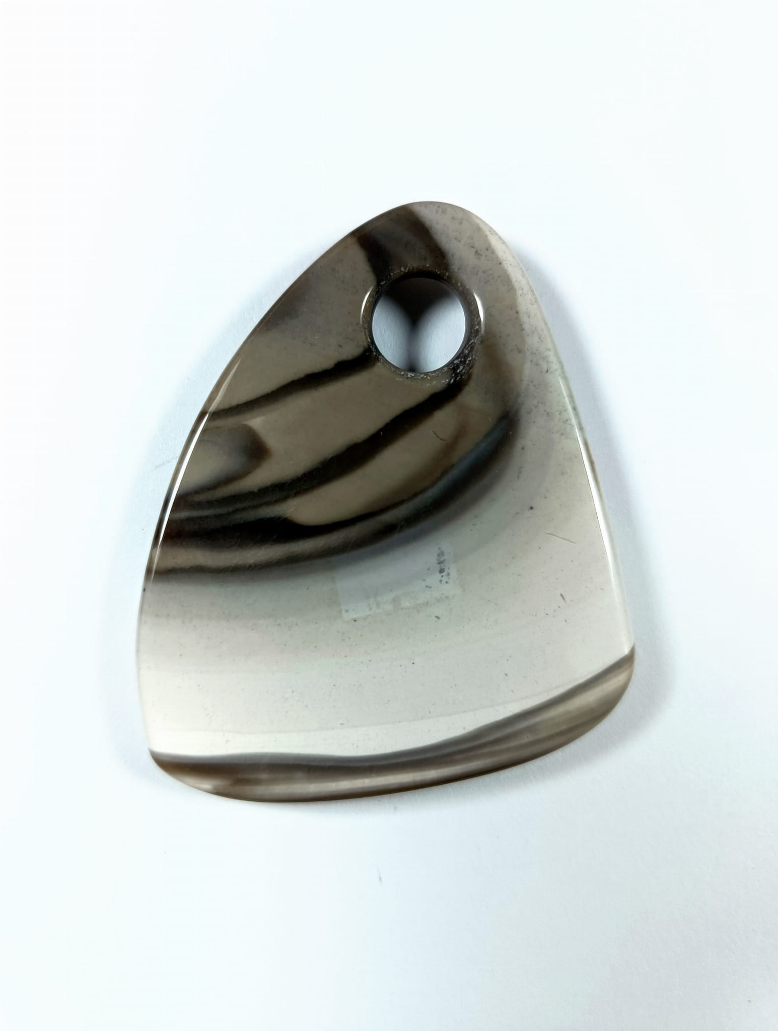 Wisiorek z krzemienia pasiastego rzeźbiony z poprzecznym otworkiem
