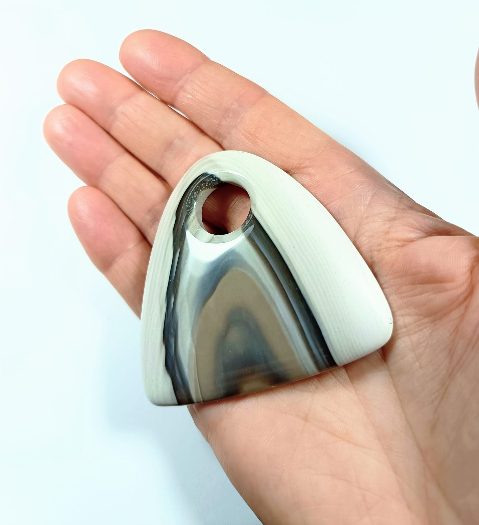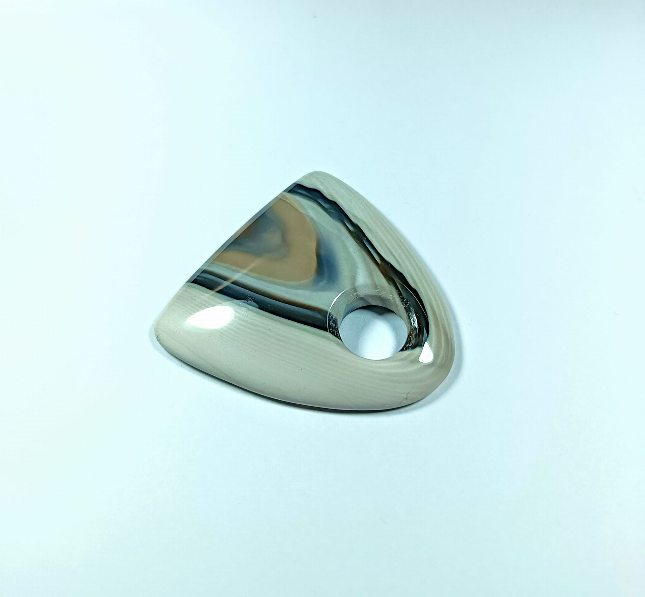 Wisiorek z krzemienia pasiastego rzeźbiony z poprzecznym otworkiem