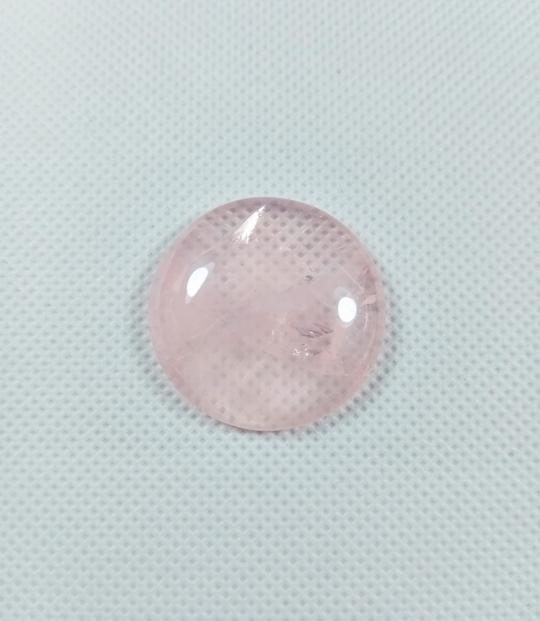 Mamy tutaj staranne wykonany kaboszon z kwarcu różowego.