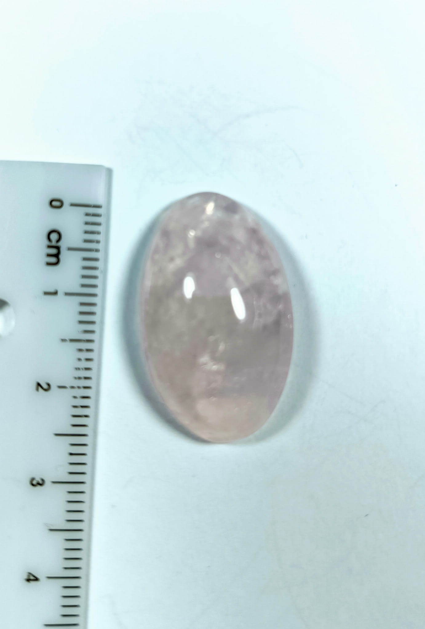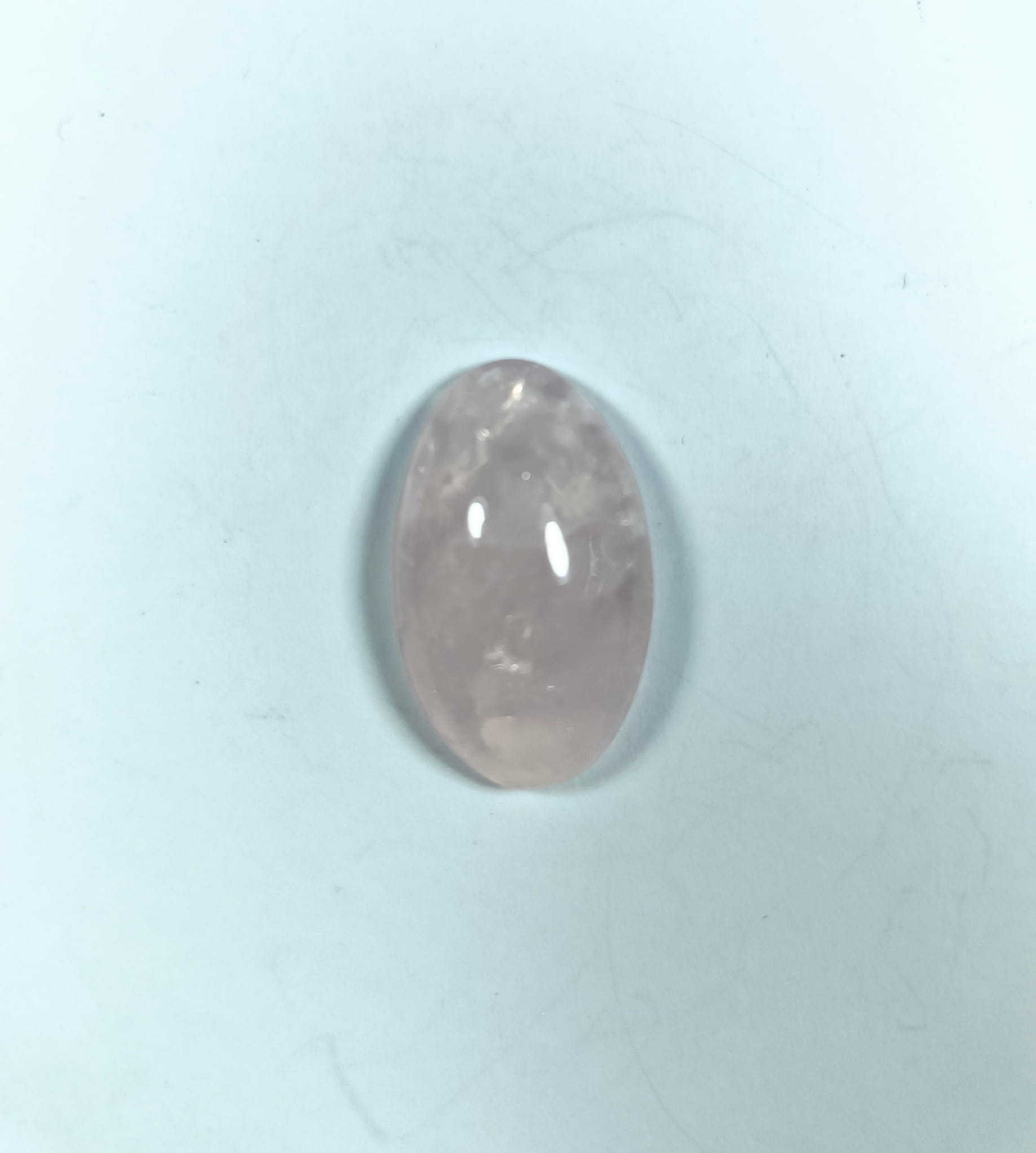 Mamy tutaj staranne wykonany kaboszon z kwarcu różowego.