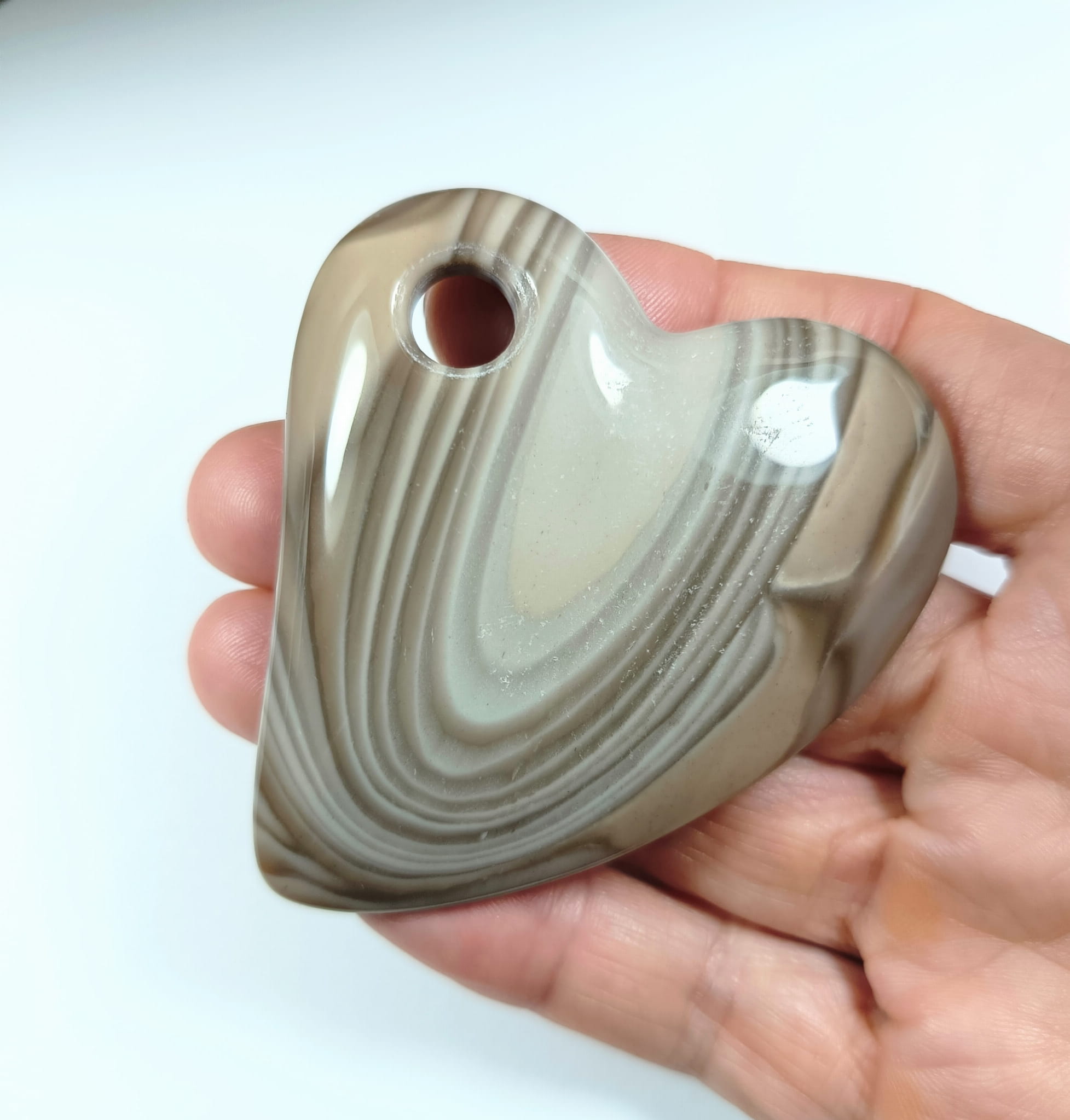 Serduszko z krzemienia pasiastego z otworkiem na rzemień