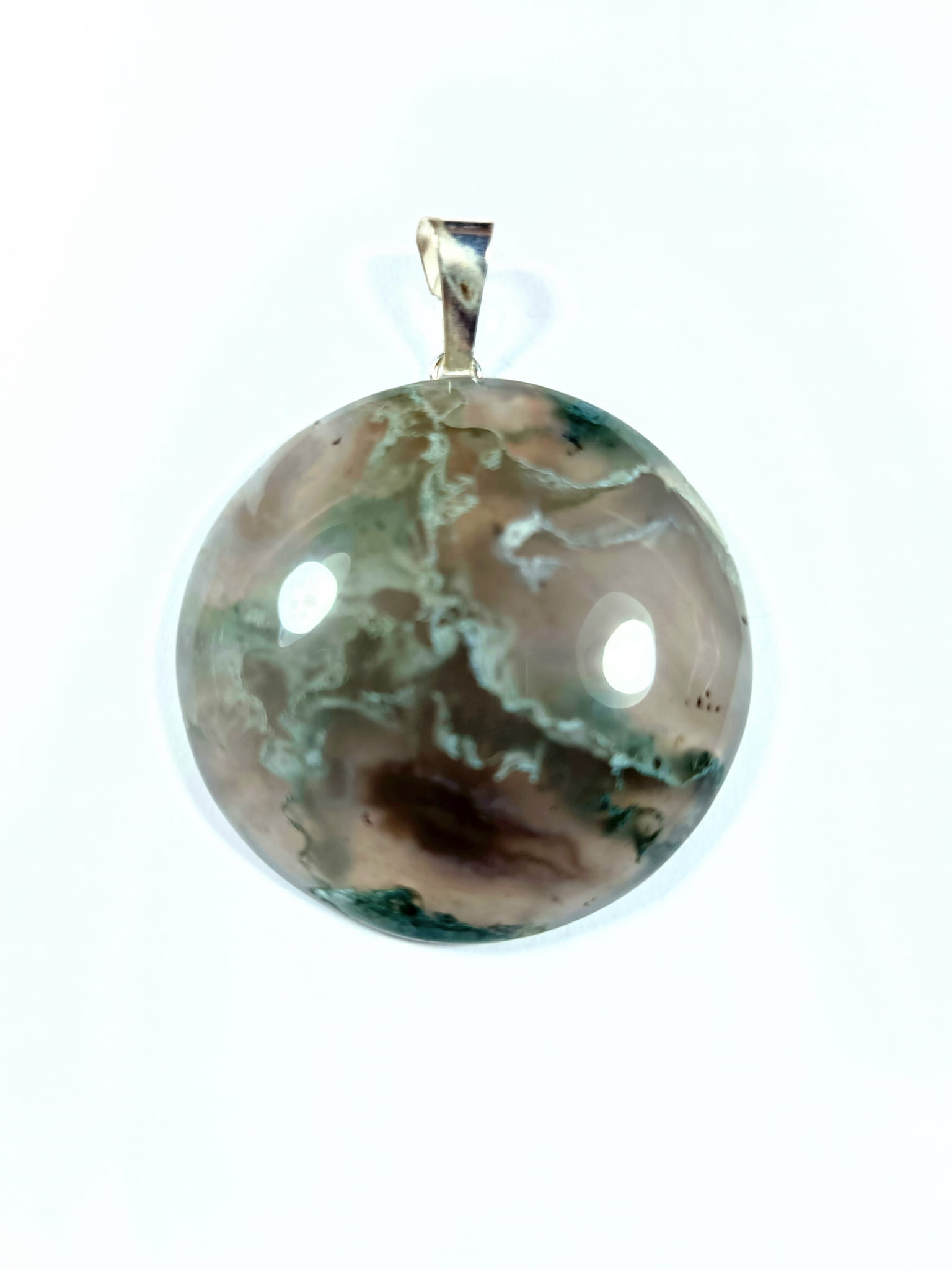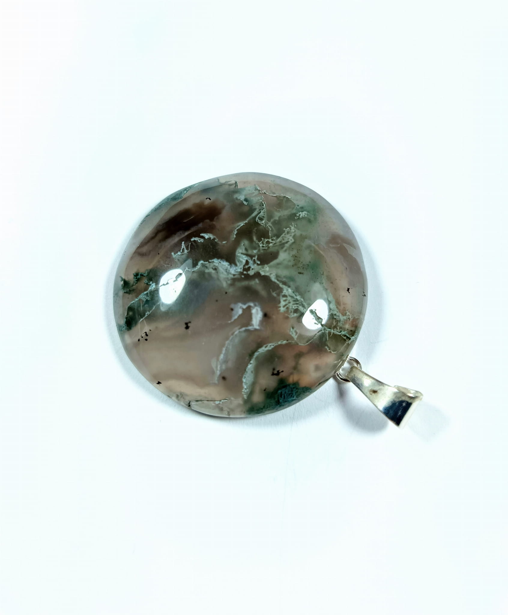 Wisiorek z agatu mszystego na posrebrzanej zawieszce