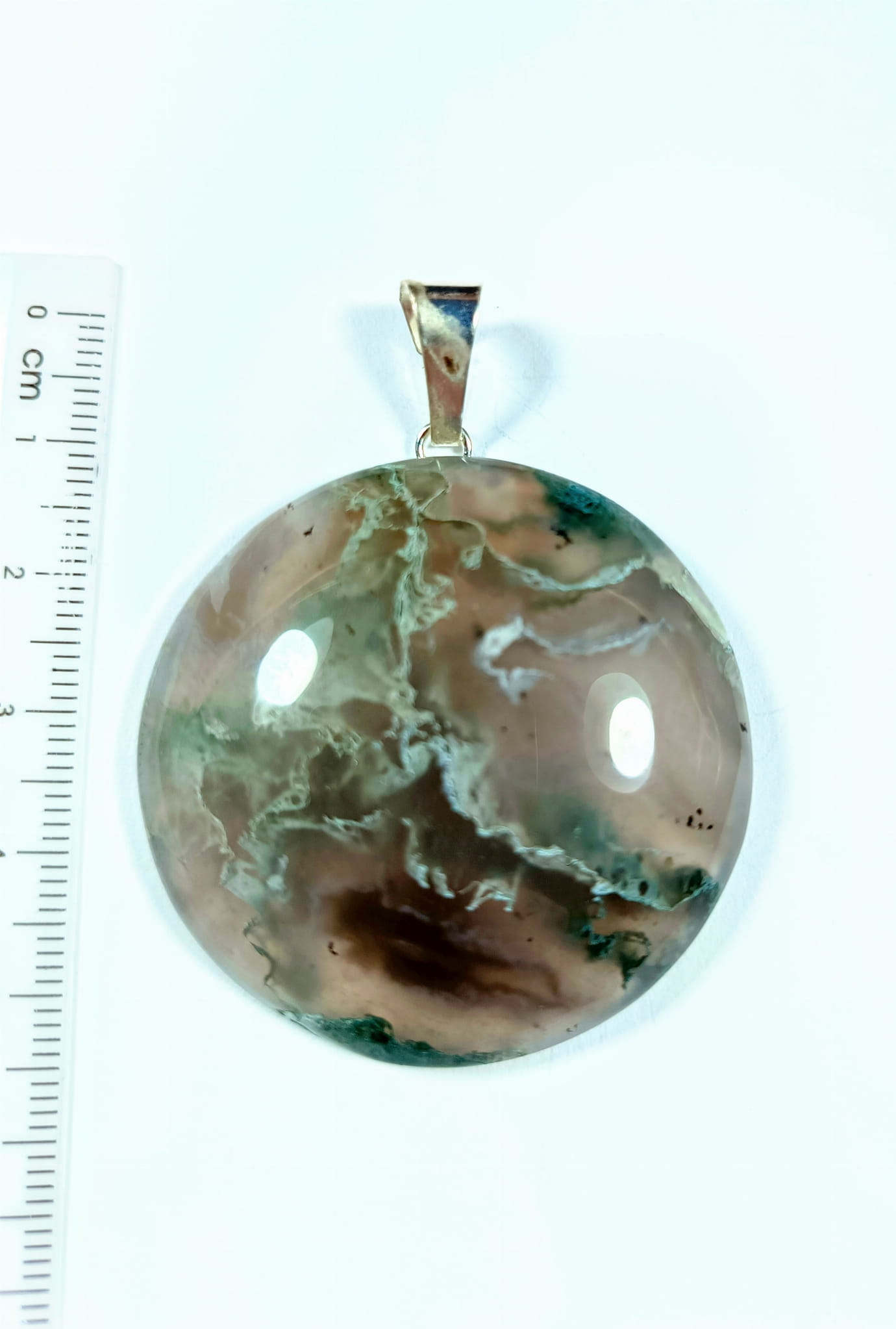 Wisiorek z agatu mszystego 43 mm z posrebrzaną zawieszką. Zielona głębia i piękno :).
