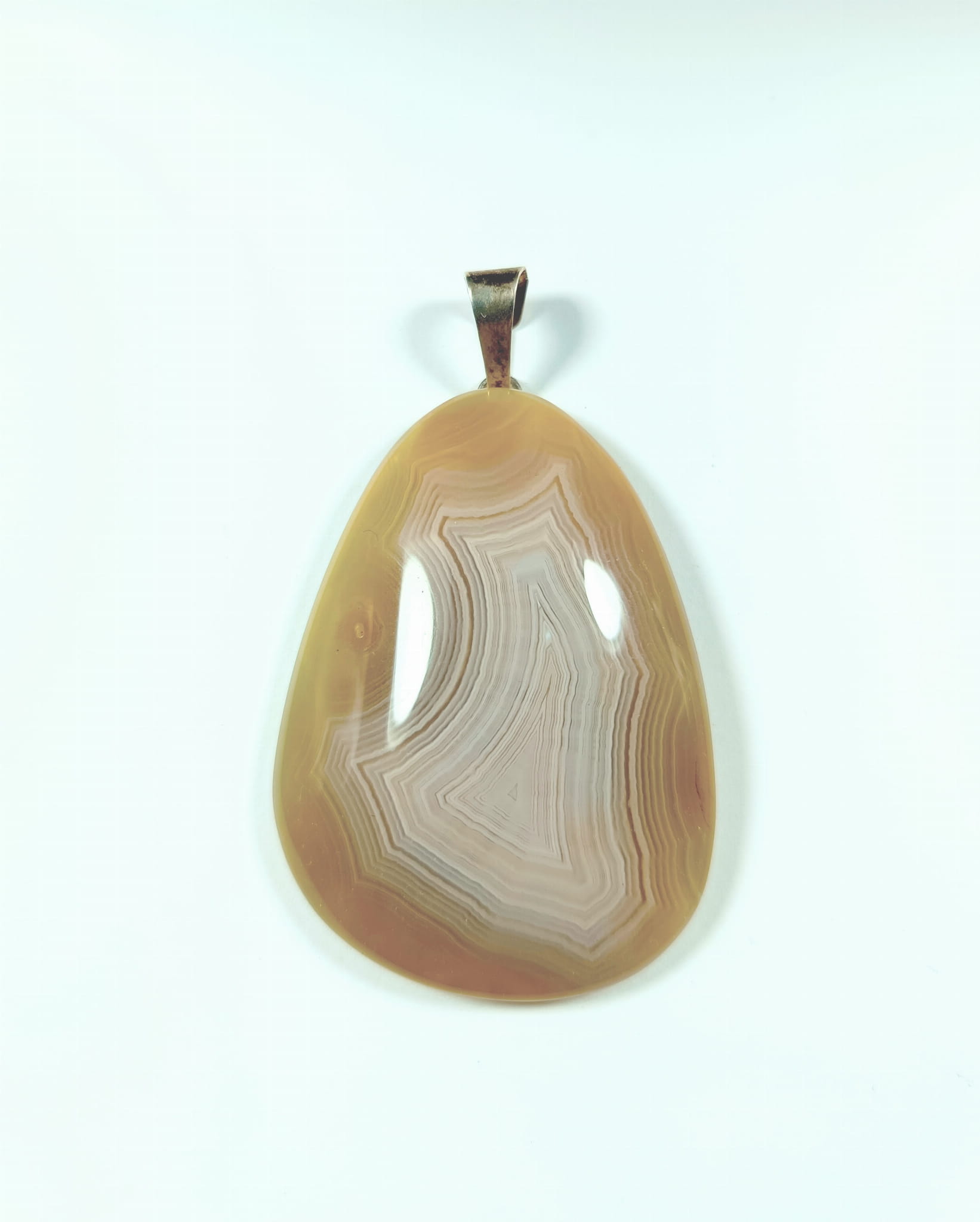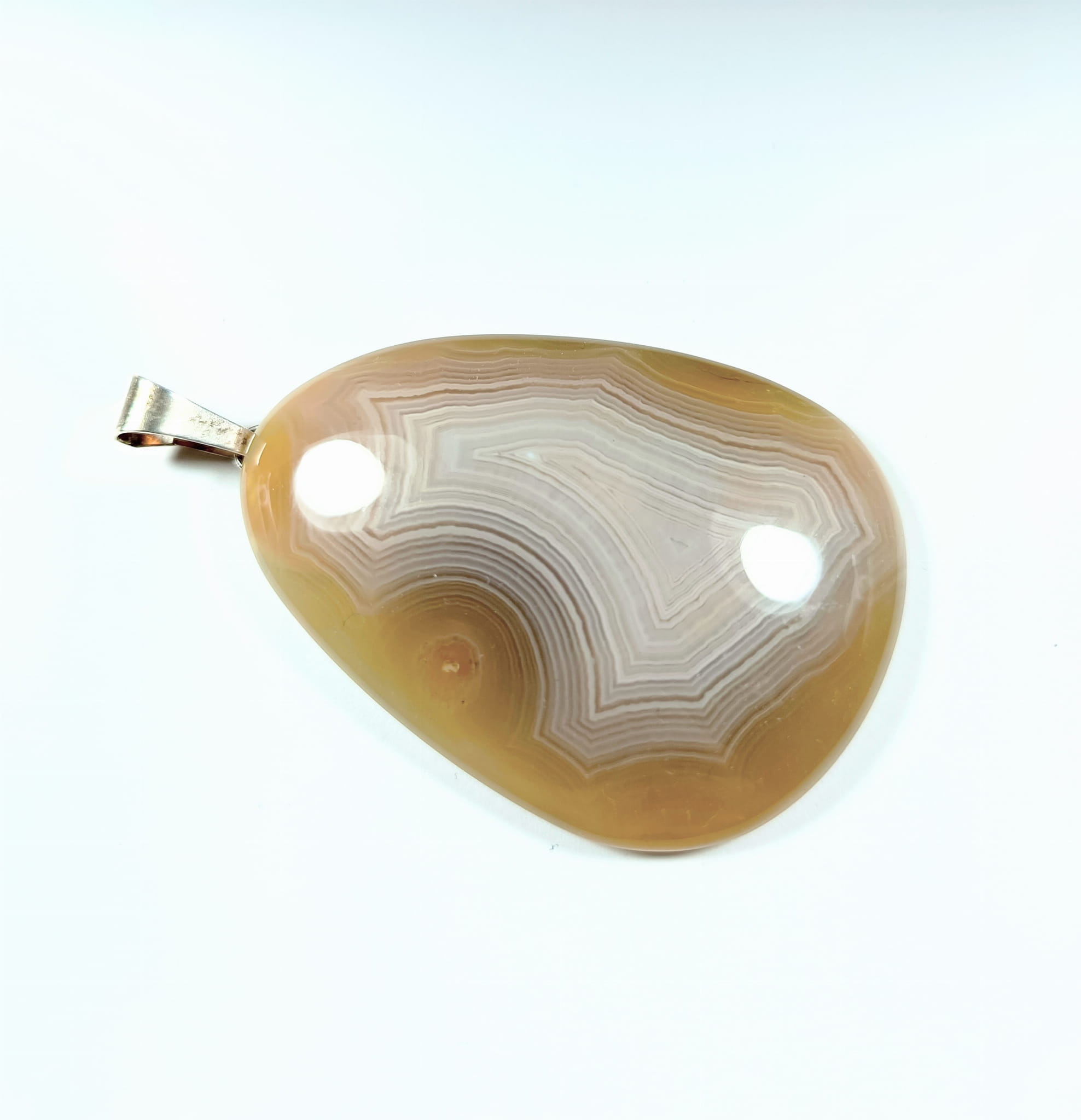 Agat z jasnymi pasemkami na posrebrzanej zawieszce