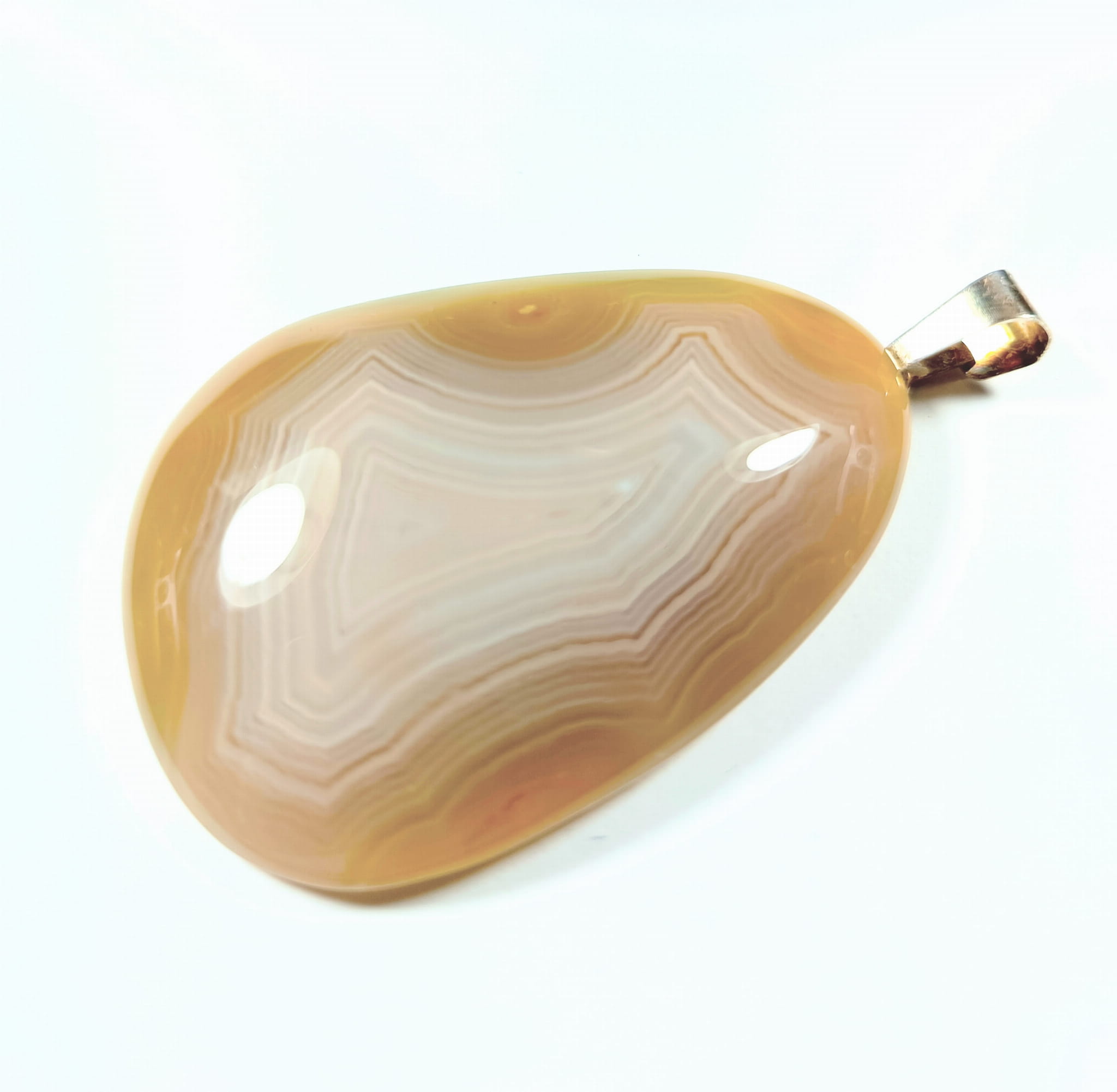 Wisiorek Agat na posrebrzanej zawieszce biało-bursztynowy z agatowymi wstęgami
