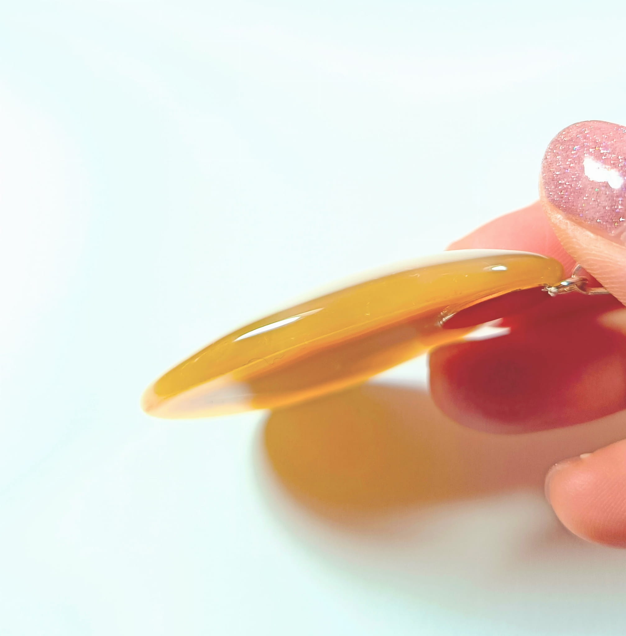 Agat z otworkiem na rzemień, w ciepłym, bursztynowym kolorze.