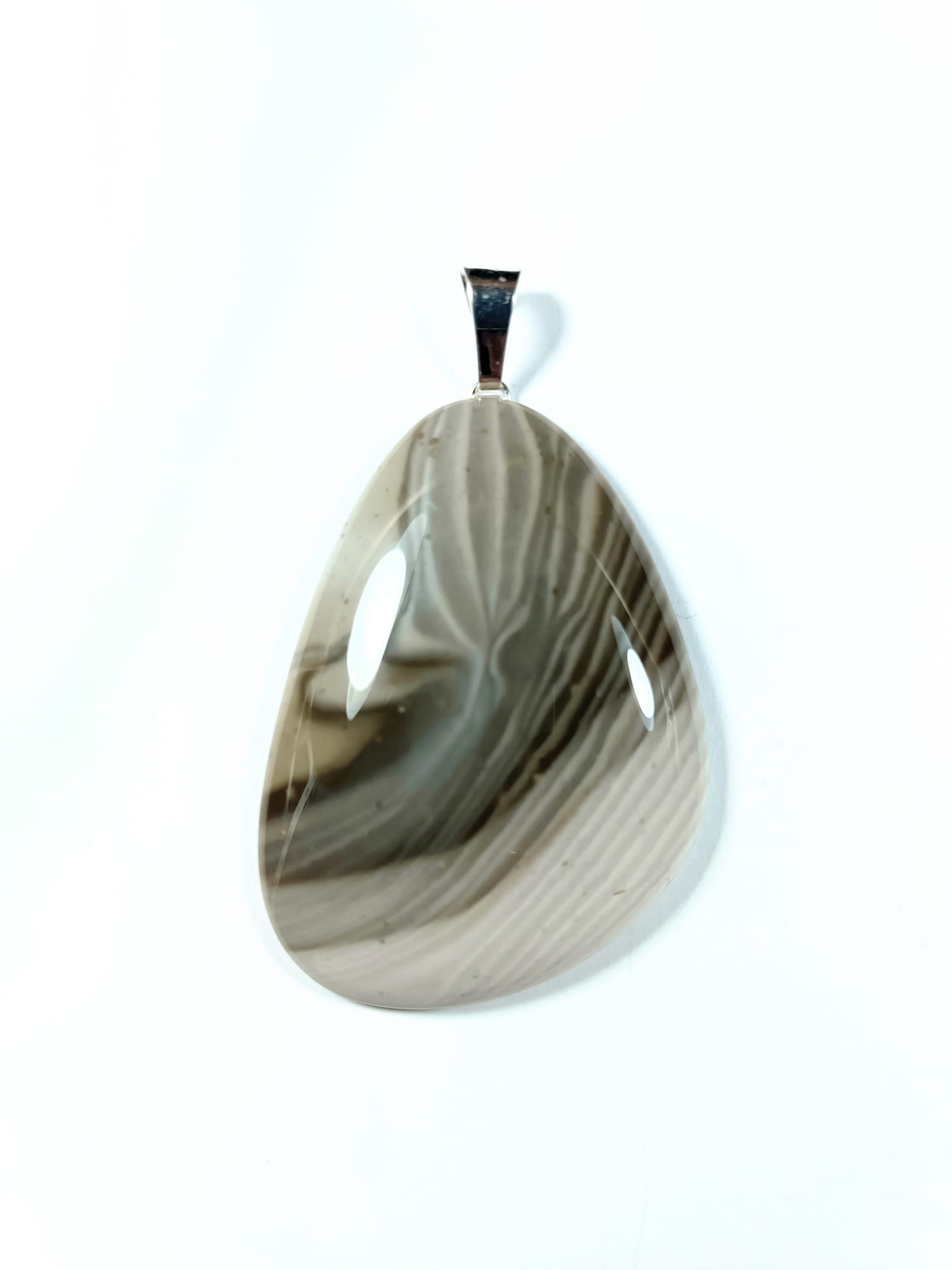 Krzemień pasiasty na posrebrzanej zawieszce rzeźba
