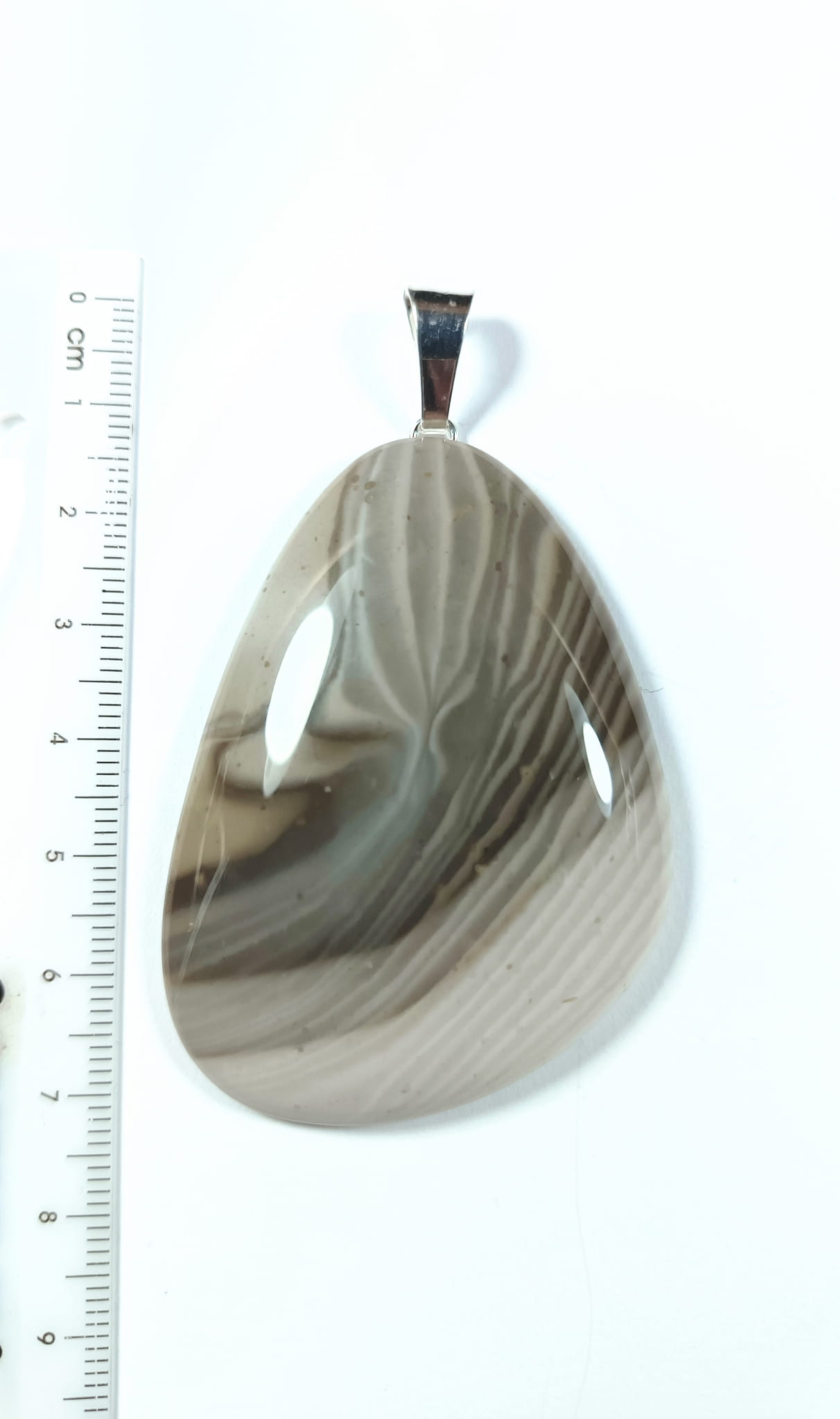 Wisiorek Krzemień pasiasty z otworkiem, rozmiar kamienia 68mm x 56mm