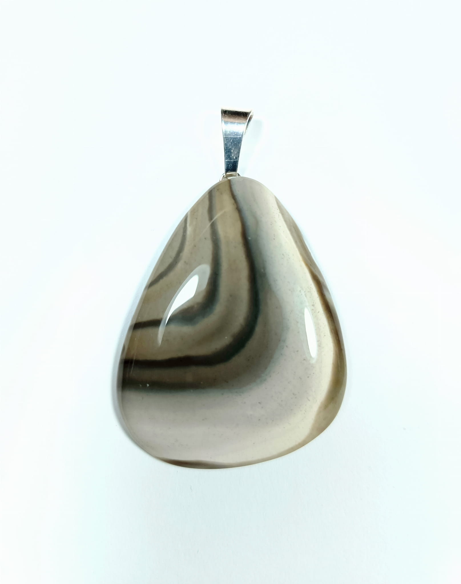 Wisiorek krzemień pasiasty na posrebrzanej zawieszce