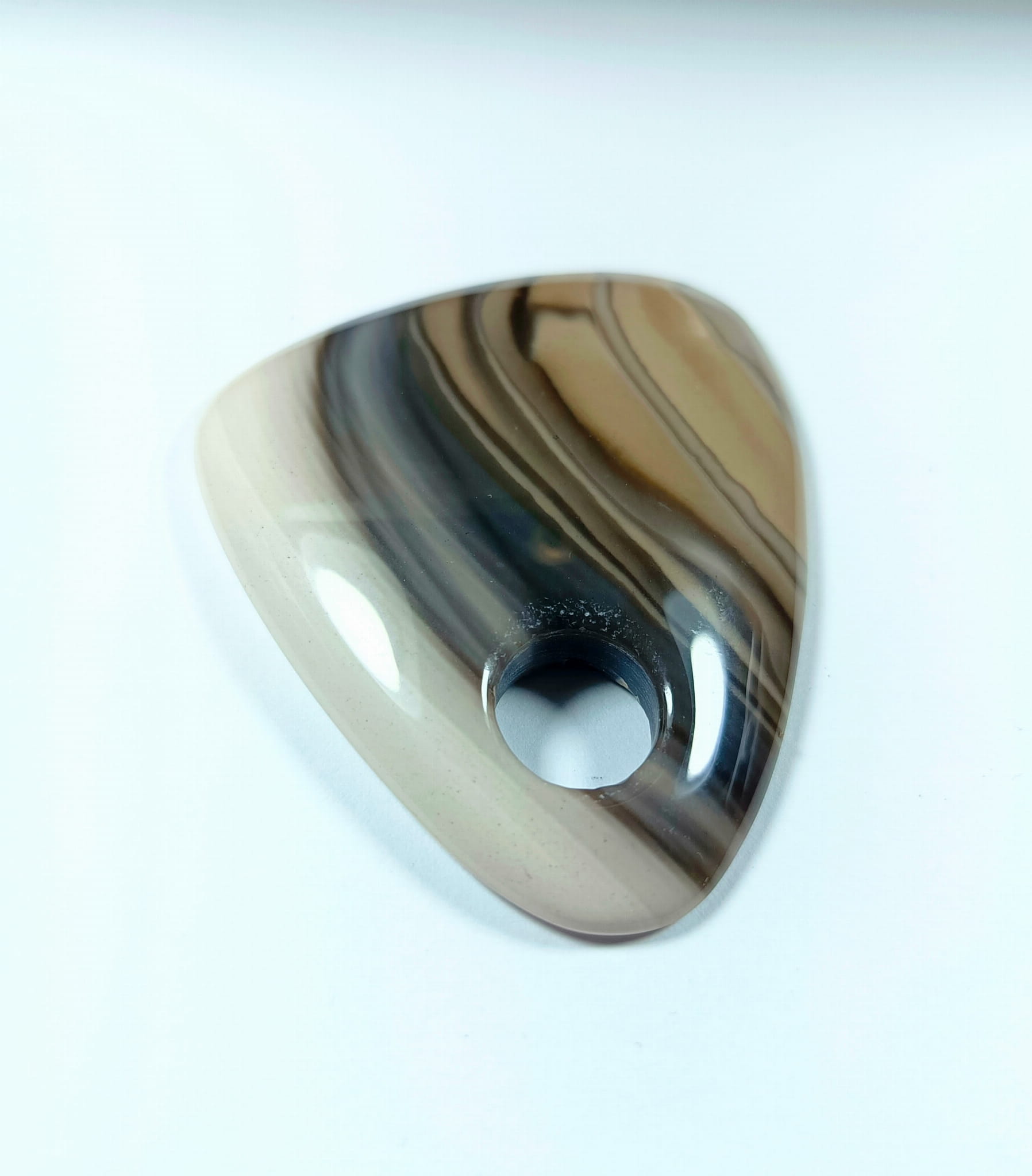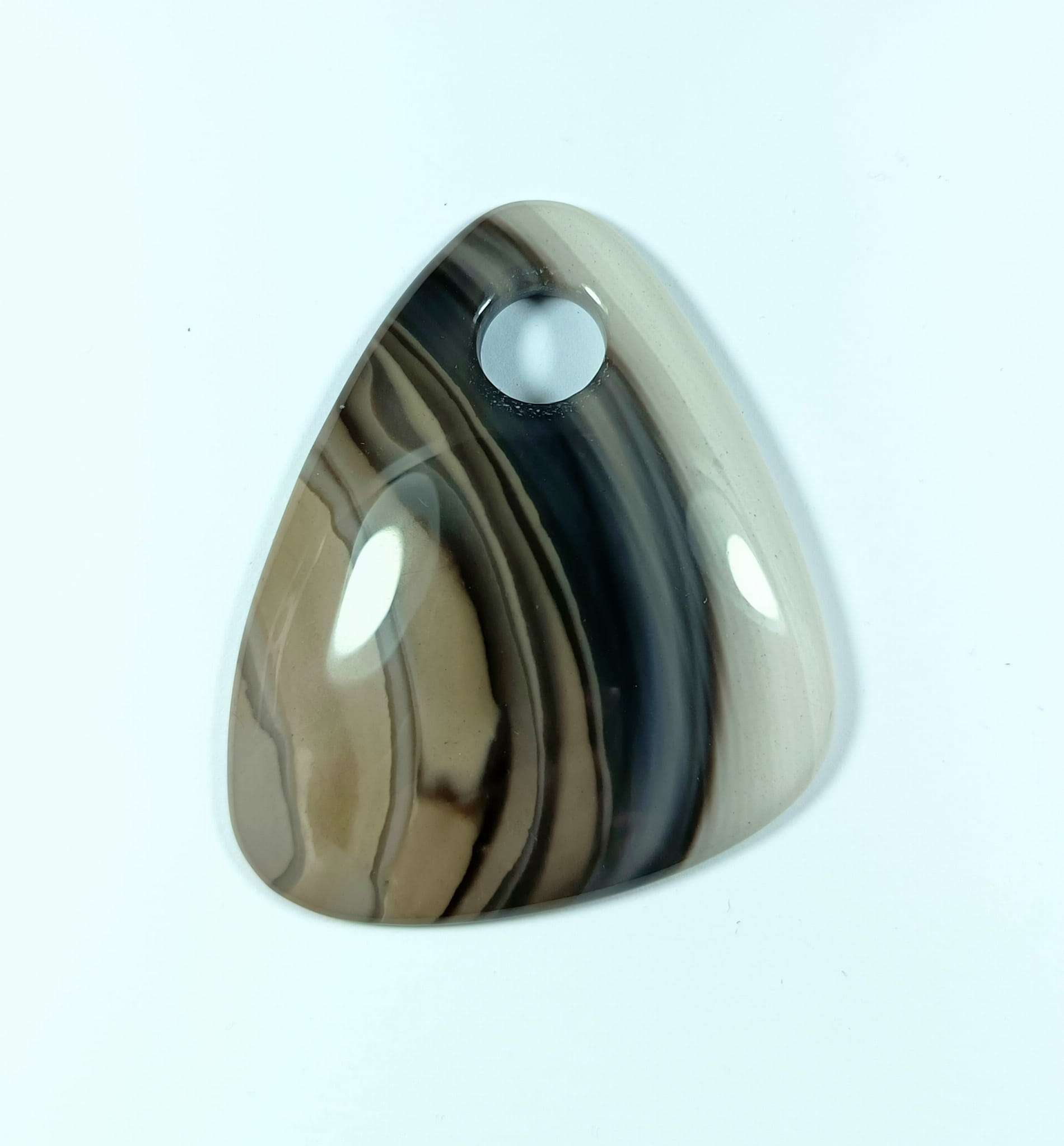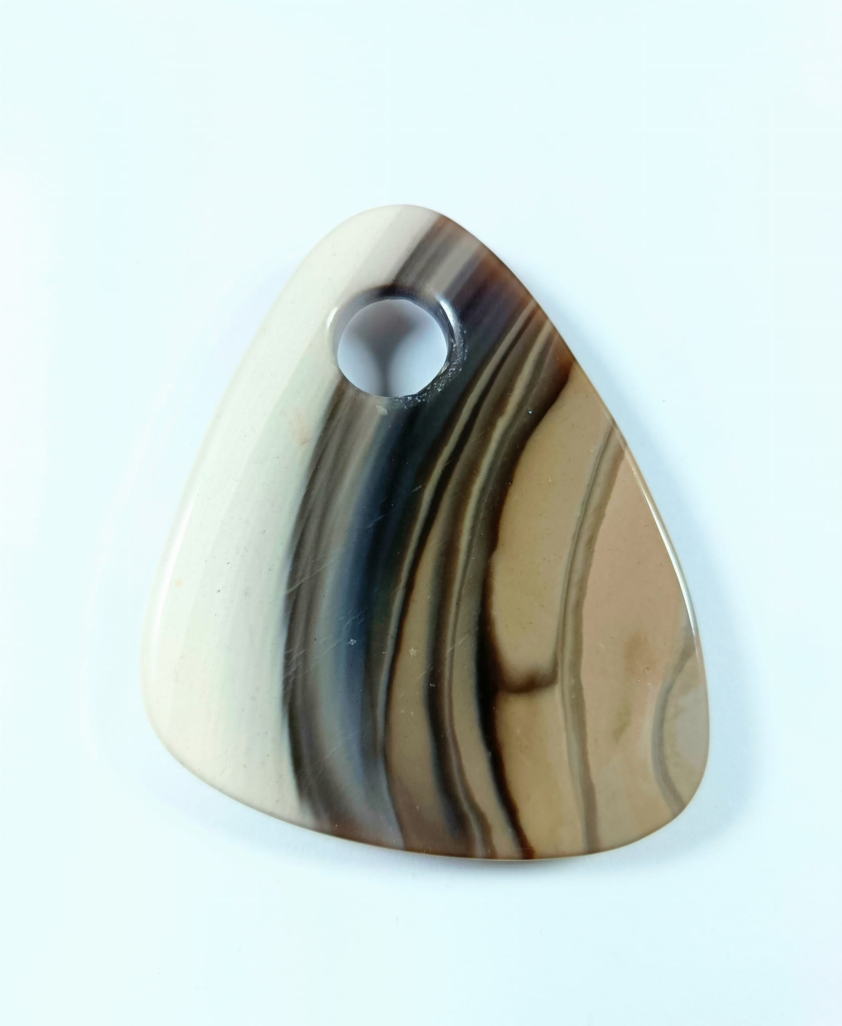 Wisiorek z krzemienia pasiastego z poprzecznym otworkiem