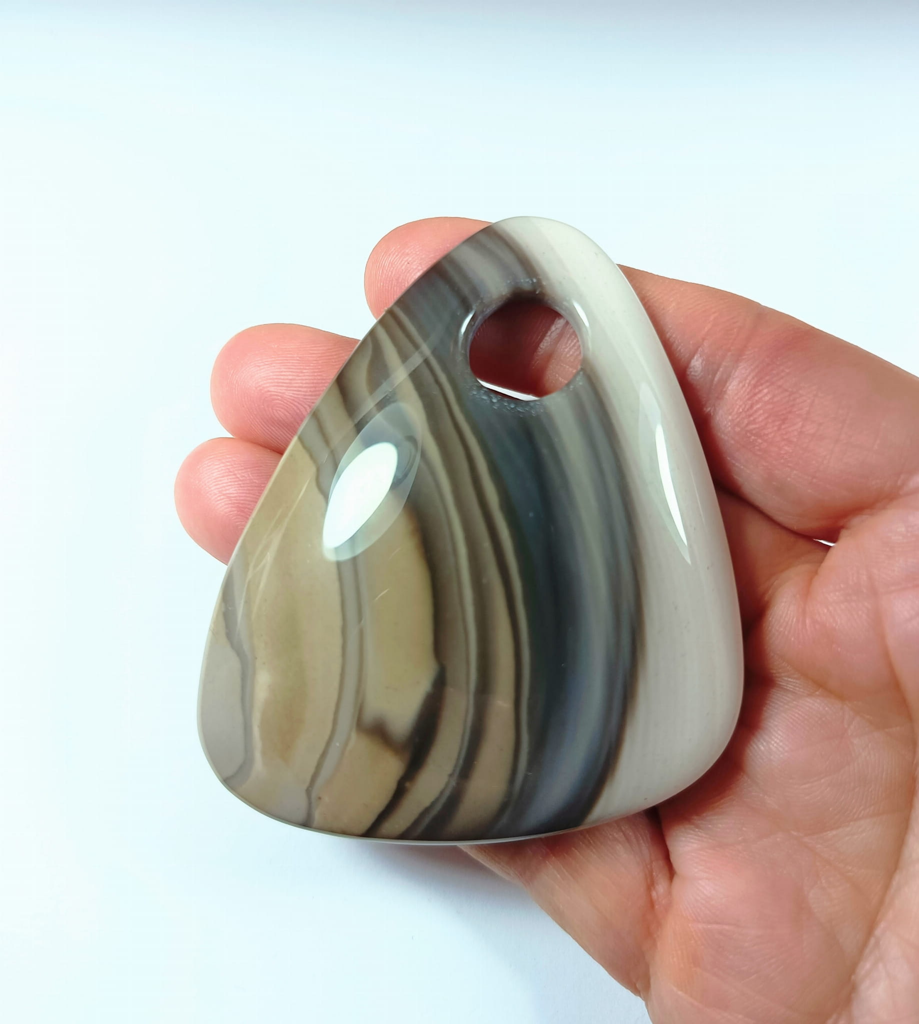 Wisiorek Krzemień pasiasty z otworkiem, rozmiar kamienia 68mm x 56mm