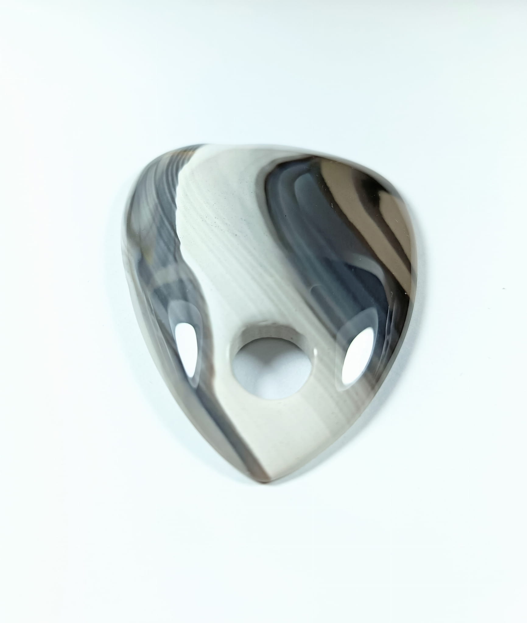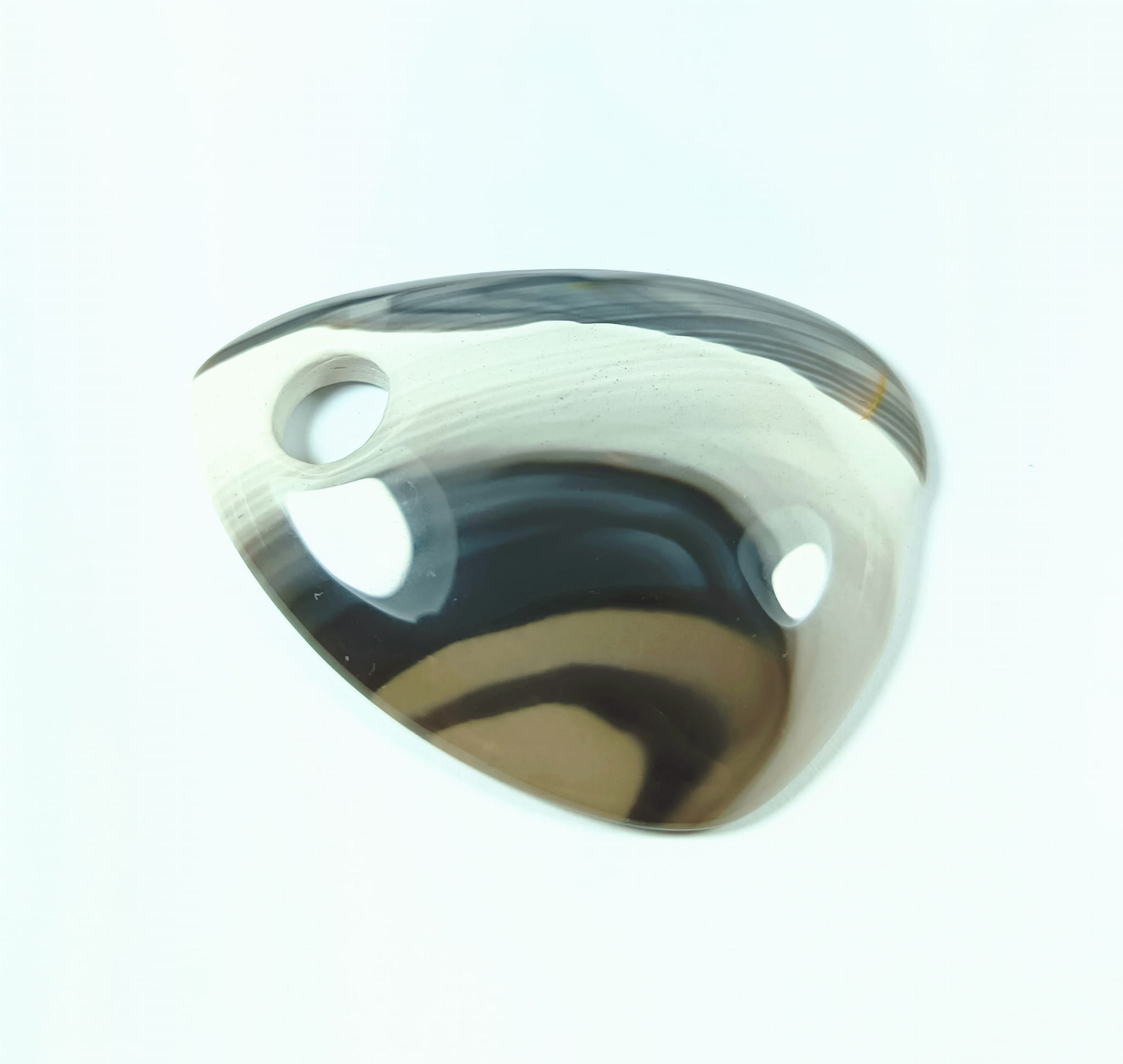 Wisiorek z krzemienia pasiastego rzeźbiony z poprzecznym otworkiem