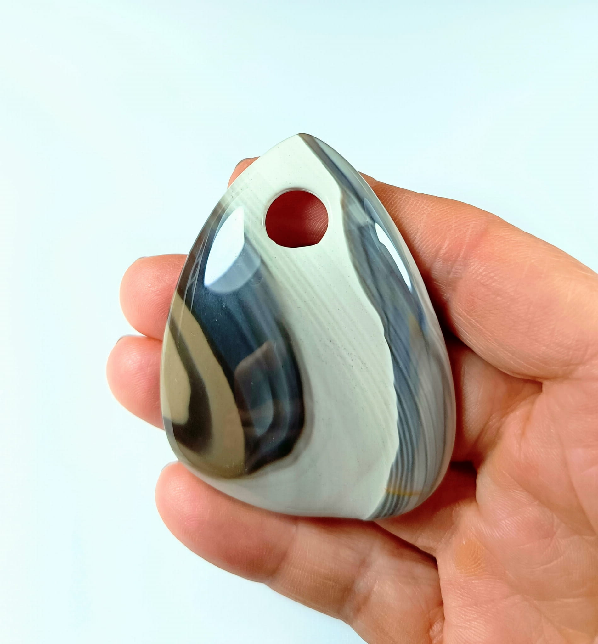 Wisiorek z krzemienia pasiatego ręcznie rzeźbiony