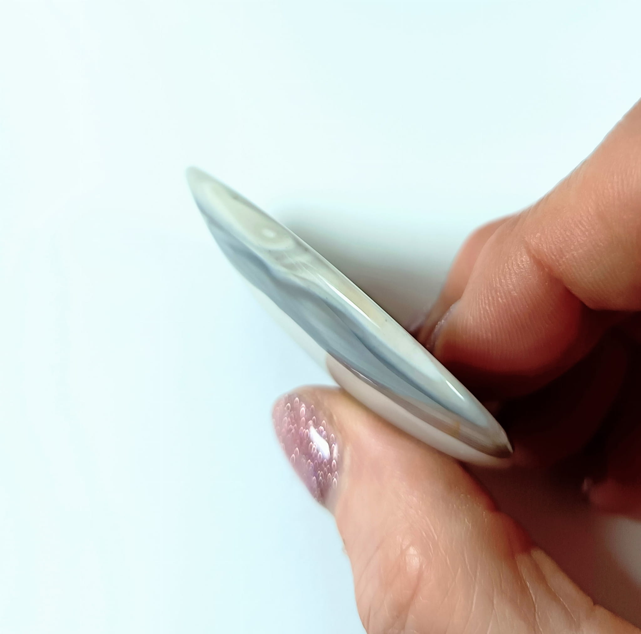 Krzemień pasiasty kaboszon szaro-beżowo-biały