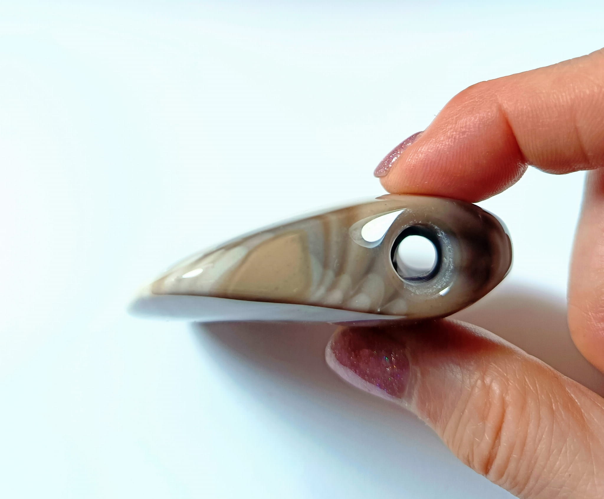 Wisiorek z krzemienia pasiastego rzeźbiony z poprzecznym otworkiem