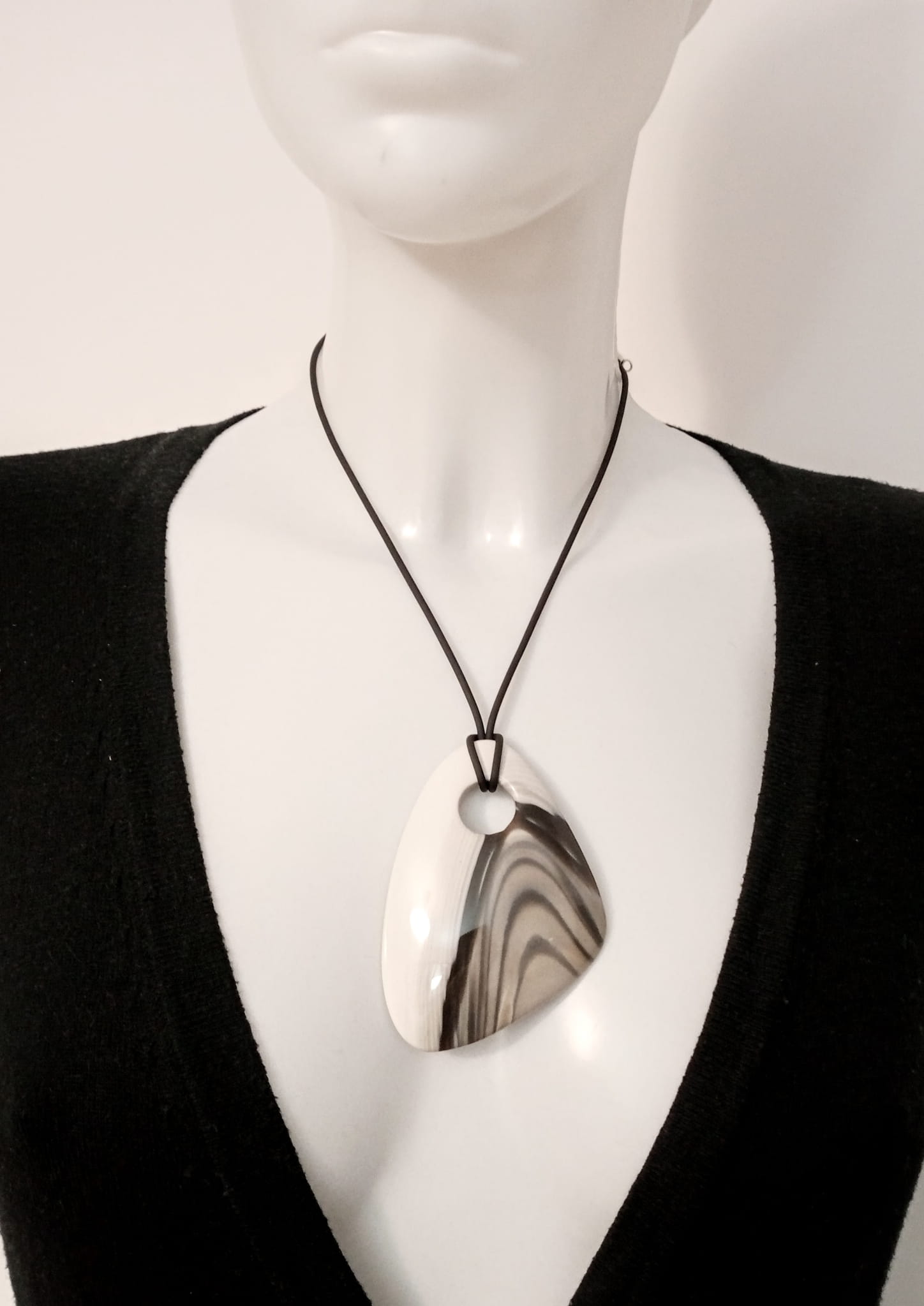 Krzemień pasiasty ręcznie rzeźbiony na czarnym kauczukowym rzemieniu