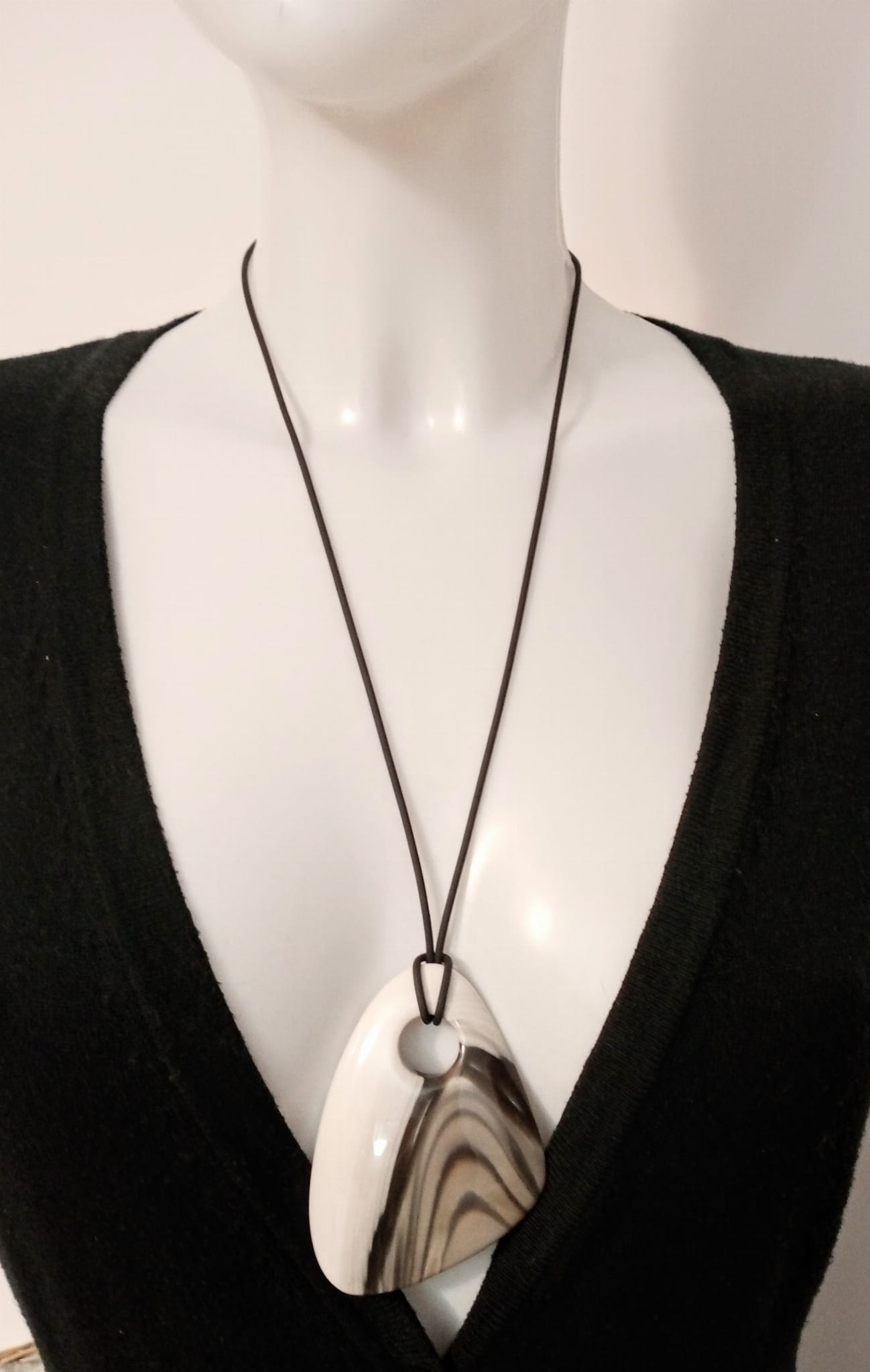 Powierzchnia jest starannie wypolerowana. Zawieszony na naturalnym sznurku.