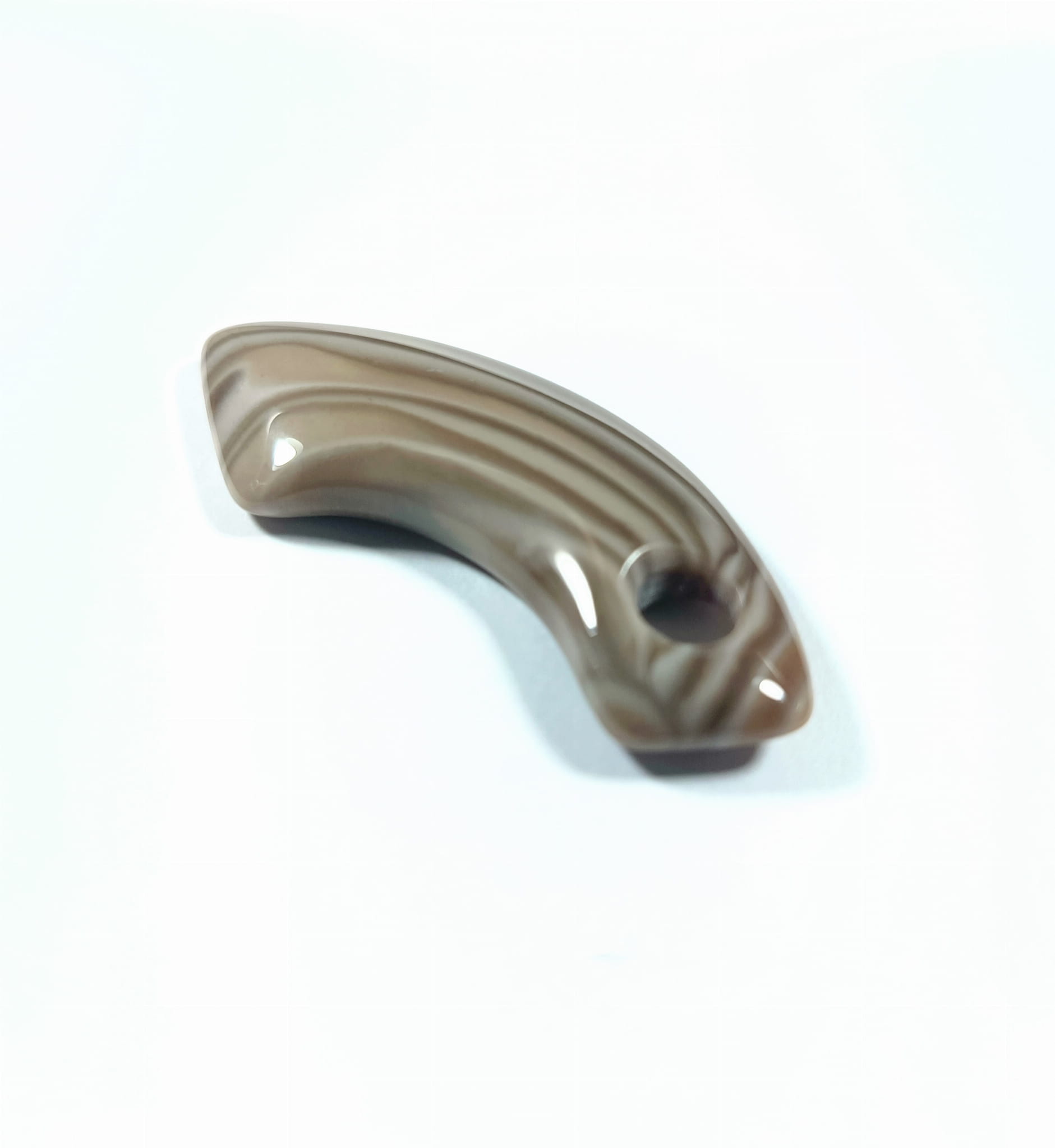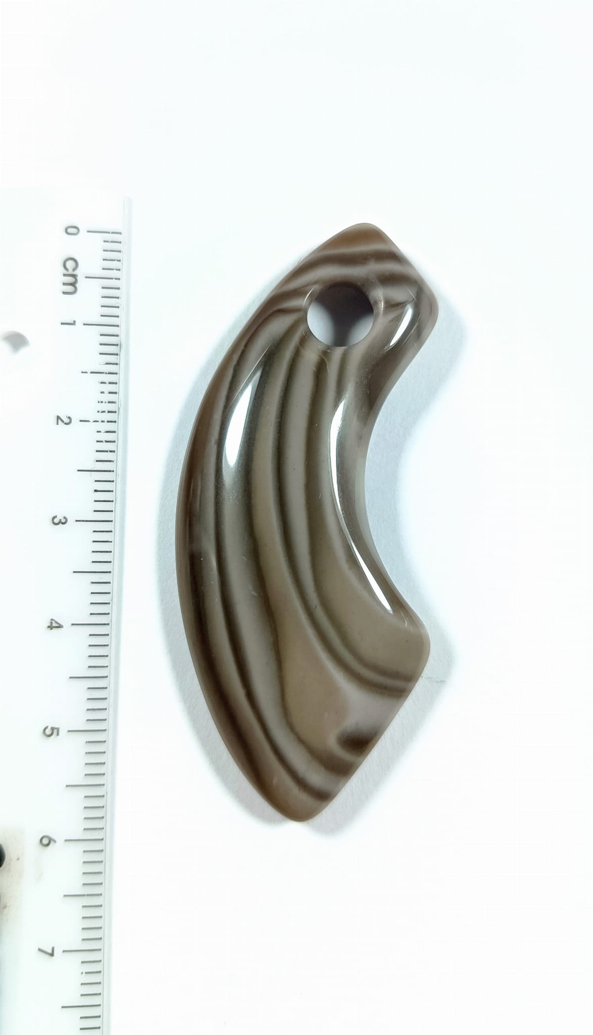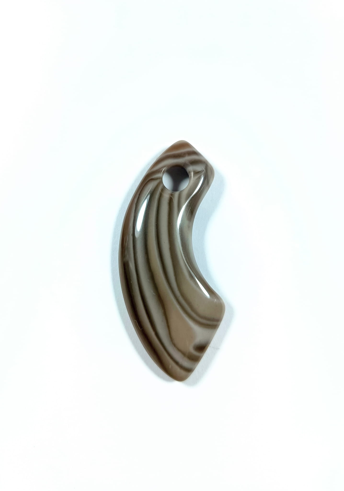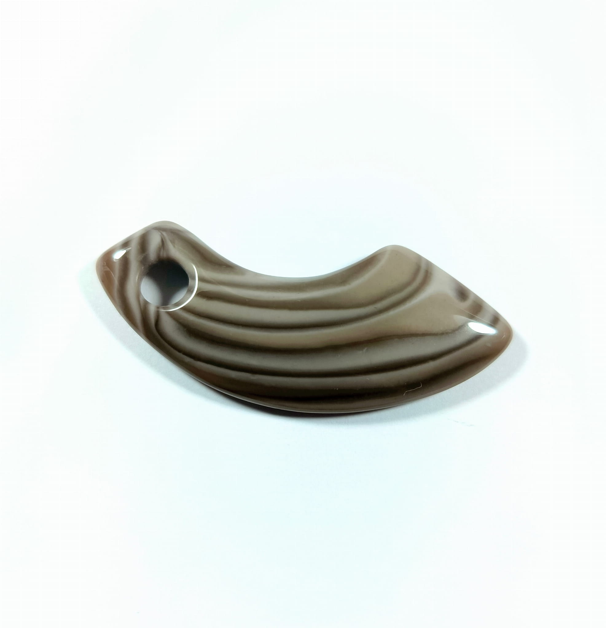 Wisiorek z krzemienia pasiastego rzeźbiony z poprzecznym otworkiem