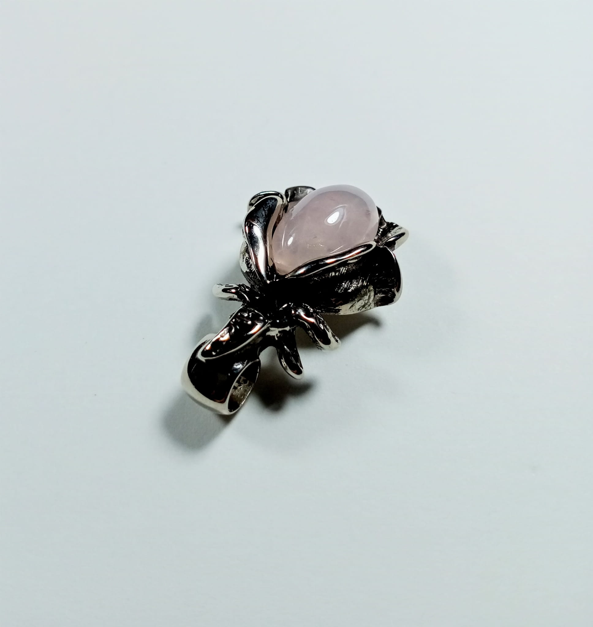 Wisiorek róża w kolorze srebra z kwarcem różowym