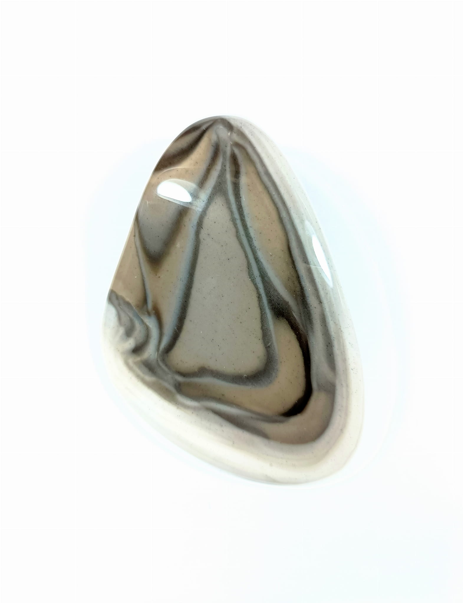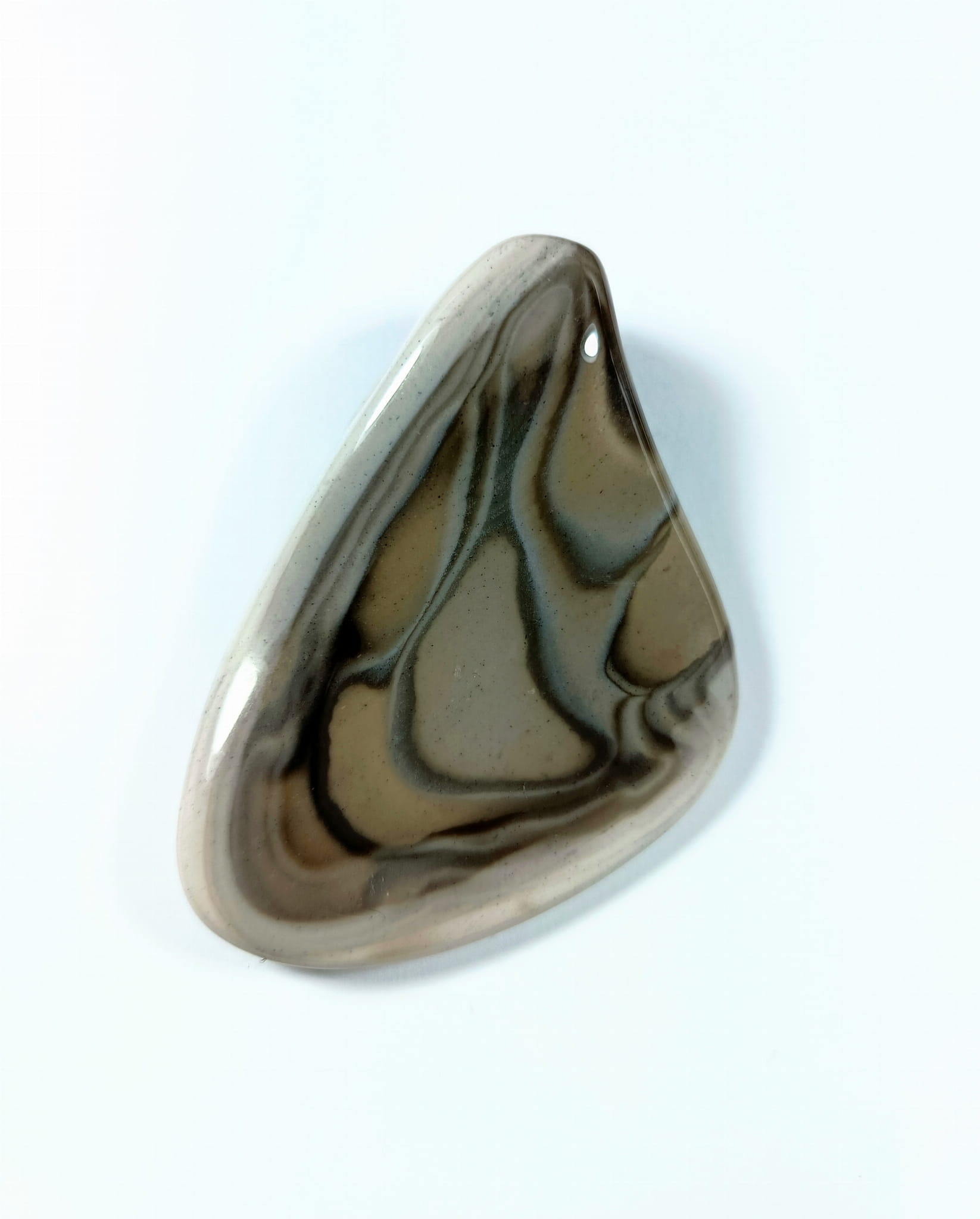 Krzemień pasiasty do oprawy, naturalny kamień ręcznie formowany w kształt zbliżony do łezki, szlifowany.
