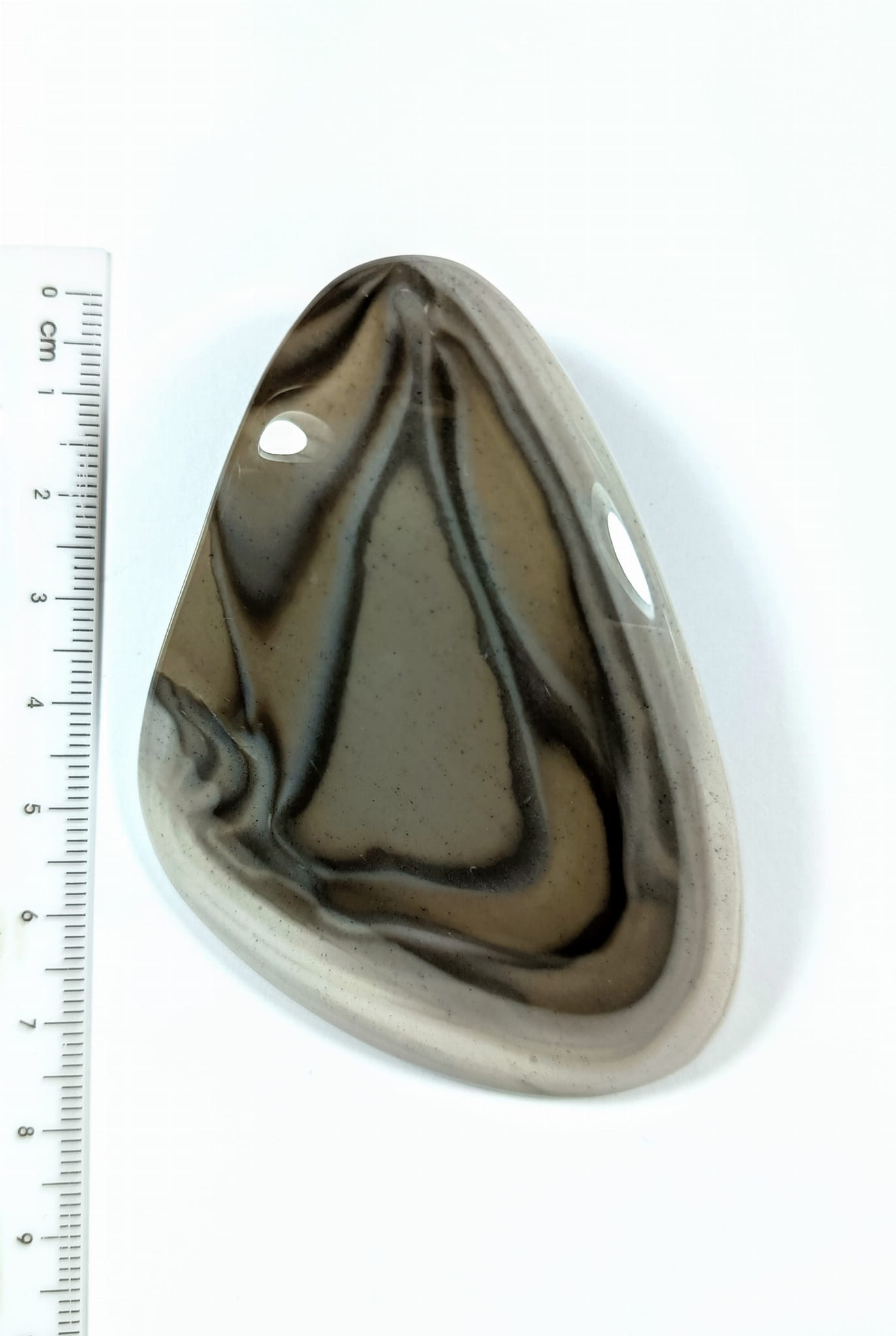 Wisiorek z krzemienia pasiastego z poprzecznym otworkiem